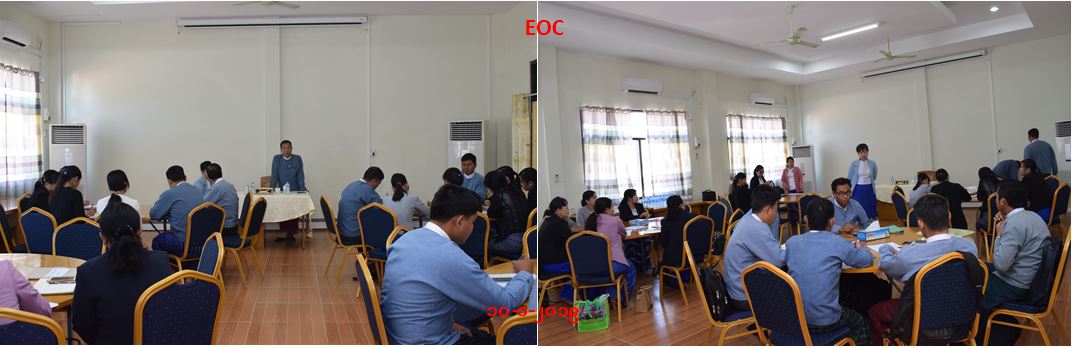 (၁၀-၁-၂၀၁၉) ရက်နေ့၊ နံနက် (၀၉:၃၀) အချိန်တွင် လူမှုဝန်ထမ်း၊ ကယ်ဆယ်ရေးနှင့် ပြန်လည်နေရာချထားရေးဝန်ကြီးဌာန၊ ဘေးအန္တရာယ်ဆိုင်ရာ စီမံခန့်ခွဲမှုဦးစီးဌာန (ရုံးချုပ်) ၊ အရေးပေါ်အခြေအနေစီမံခန့်ခွဲမှုဗဟိုဌာန(EOC)၊ အစည်းအဝေးခန်းမ တွင် ခရိုင်ဦးစီးမှူးရုံးများ၌ တာဝန်ထမ်းဆောင်လျက်ရှိသော ဦးစီးအရာရှိများအား ရုံးလုပ်ငန်းဆိုင်ရာကိစ္စရပ်များ ပိုမိုသိရှိ နားလည်စေရန်အတွက် တွေ့ဆုံညှိနှိုင်းခြင်း ကျင်းပပြုလုပ်ခဲ့ရာ ညွှန်ကြားရေးမှူးချုပ်၊ ဒေါက်တာကိုကိုနိုင်မှ အဖွင့်အမှာ စကားပြောကြားပြီး လိုအပ်သည်များ လမ်းညွှန်မှာကြားခဲ့ကြောင်း သိရှိရပါသည်။