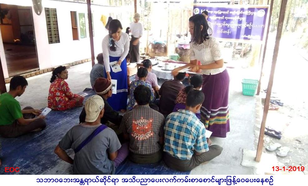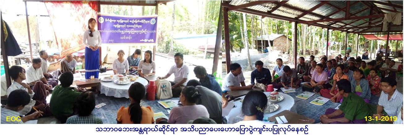 လူမှုဝန်ထမ်း၊ ကယ်ဆယ်ရေးနှင့်ပြန် လည်နေရာချထားရေးဝန်ကြီးဌာန၊ ဘေးအန္တရာယ်ဆိုင်ရာစီမံခန့်ခွဲမှုဦးစီးဌာန၊ မော်လမြိုင်ကျွန်းမြို့နယ် ဦးစီးမှူးရုံးမှ တာဝန်ရှိသူများသည် မြို့နယ်ပြန်ကြားရေးနှင့်ပြည်သူ့ဆက်ဆံရေးဦးစီးဌာန၊ မွေးမြူရေးနှင့်ကုသရေးဦးစီးဌာန၊ ကျေးလက်ဒေသ ဖွံ့ဖြိုးတိုးတက်ရေးဦးစီးဌာန တို့နှင့် ပူးပေါင်း၍ (၁၃-၁-၂၀၁၉)ရက်နေ့၊ (၁၁:၀၀) နာဲရီအချိန်တွင် လပွတ္တာခရိုင်၊ မော်လမြိုင်ကျွန်းမြို့နယ်၊ ကွမ်းခြံ ကုန်းကျေးရွာအုပ်စု၊ မဲဇလီကျေးရွာတွင် ကျေးရွာပြည်သူ (၇၀)ဦးခန့်အား သဘာဝဘေးအန္တရာယ်ဆိုင်ရာအသိပညာပေးဟောပြောပွဲ ဆောင် ရွက်ခဲ့ပြီး လက်ကမ်းစာစောင်များဝေငှခြင်းတို့ ဆောင်ရွက်ခဲ့ကြောင်း သတင်းရရှိပါသည်။