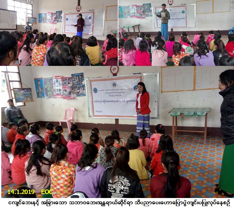 လူမှုဝန်ထမ်း၊ ကယ်ဆယ်ရေးနှင့် ပြန်လည်နေရာချထားရေးဝန်ကြီးဌာန၊ ဘေးအန္တရာယ်ဆိုင်ရာ စီမံခန့်ခွဲမှုဦးစီးဌာန၊ မိုင်းပျဉ်းမြို့နယ်ဦးစီးမှူးရုံးမှ တာဝန်ရှိသူများသည် (၁၄-၁-၂၀၁၉) ရက်နေ့၊ နံနက် (၀၉း၀၀) နာရီမှ (၁၁း၃၀) နာရီ အထိ မိုင်းပျဉ်းမြို့နယ်၊ ဟောင်ကန်ကျေးရွာအုပ်စု၊ ဝမ်ယန်းကျေးရွာ၊ အခြေခံပညာမူလတန်းလွန်ကျောင်း၌ ငလျင်ဘေးနှင့် အခြားသောသဘာဝဘေးအန္တရာယ်ဆိုင်ရာ အသိပညာပေးဟောပြောပွဲ ကျင်းပပြုလုပ်ခဲ့ရာ ဆရာ/ဆရာမ၊ ကျောင်းသား/သူ၊ စုစုပေါင်း (၈၀) ဦးတက်ရောက်ခဲ့ပါကြောင်း သတင်းရရှိပါသည်။