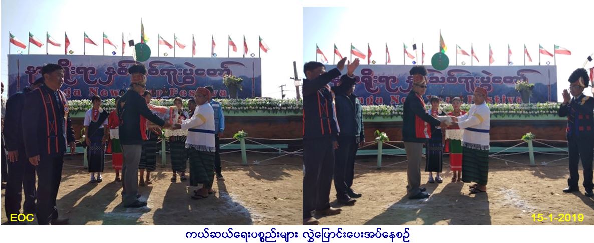 (၁၅-၁-၂၀၁၉)ရက်နေ့တွင် နိုင်ငံတော် အတိုင်ပင်ခံရုံး၊ ဝန်ကြီးဦးကျော်တင့်ဆွေနှင့် တကွ လူမှုဝန်ထမ်း၊ ကယ်ဆယ်ရေးနှင့် ပြန်လည်နေရာချ ထားရေးဝန်ကြီးဌာန၊ ဘေးအန္တရာယ်ဆိုင်ရာစီမံခန့်ခွဲမှုဦးစီးဌာန၊ စစ်ကိုင်းတိုင်းဒေသကြီးဦးစီးမှူးရုံးမှ တာဝန်ရှိသူများသည် လေရှီးမြို့၌ ကျင်းပသော နာဂရိုးရာနှစ်သစ်ကူးပွဲတော်တွင် နာဂကိုယ်ပိုင်အုပ်ချုပ်ခွင့်ရဒေသရှိ မြို့နယ်(၃)မြို့နယ်အတွက် ထောက်ပံ့ပေးမည့် ကယ်ဆယ်ရေးပစ္စည်းများအား နာဂဒေသဦးစီး၊ ဥက္ကဌ ဦးကေဆိုင်ထံသို့ (၁၅-၁-၂၀၁၉) ရက်နေ့တွင် လွှဲပြောင်းပေးအပ်ခဲ့ကြောင်း သတင်းရရှိပါသည်။