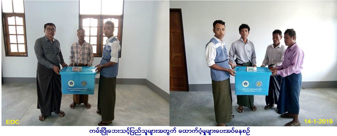 လူမှုဝန်ထမ်း၊ ကယ်ဆယ်ရေးနှင့်ပြန်လည်နေရာ ချထားရေးဝန်ကြီးဌာန၊ ဘေးအန္တရာယ်ဆိုင်ရာ စီမံခန့်ခွဲမှုဦးစီးဌာန၊ မအူပင်ခရိုင်ဦးစီးမှူးရုံးမှ တာဝန်ရှိသူများသည် မအူပင်မြို့နယ်တွင် ကမ်းပြိုဘေးသင့် အိမ်ထောင်စုများအား မအူပင်မြို့နယ်၊ ထနီးကျေးရွာအုပ်စု၊ ရွာသစ်ကျေးရွာ၌ (၂-၁-၂၀၁၉)ရက်နေ့တွင် ကမ်းပြိုဘေးကြောင့် ကြိုတင်ဖျက် သိမ်းပြောင်းရွှေ့ခဲ့သည့် နေအိမ် (၁)လုံး အိမိထောင်စု (၁)စုအတွက် ကယ်ဆယ်ရေး ပစ္စည်း (၁၀)မျိုး အိမ်ဆောက်ပစ္စည်းဖိုးရန်ပုံငွေ (၁၀၀၀၀၀/-)ကျပ်၊ လူဦးရေ (၄)ဦးအတွက် ဆန်ရိက္ခာ (၇)ရက်စာ ရန်ပုံငွေ (၈၄၀၀/-)ကျပ်၊ စုစုပေါင်း ကယ်ဆယ်ရေးရန်ပုံငွေ (၁၀၈၄၀၀/-)ကျပ်ကိုလည်းကောင်း၊ မအူပင်မြို့နယ်၊ တလုပ်လပ်ကျေးရွာအုပ်စု၊ တလုပ်လပ် အလယ်ပိုင်း ကျေးရွာ၌ (၁၀-၁-၂၀၁၉)ရက်နေ့တွင် ကမ်းပြိုဘေးကြောင့် ကြိုတင်ဖျက်သိမ်းပြောင်းရွေ့ခဲ့သည့် နေအိမ် (၂)လုံး အိမ်ထောင်စု (၂)စုအတွက် ကယ်ဆယ်ရေးပစ္စည်း (၁၀)မျိုး၊ အိမ်ဆောက်ပစ္စည်းဖိုးရန်ပုံငွေ (၂၀၀၀၀၀/-)ကျပ်၊ စုစုပေါင်းလူဦးရေ (၇)ဦးအတွက် ဆန်ရိက္ခာ (၇)ရက်စာ ရန်ပုံငွေ (၁၄၇၀၀/-)ကျပ်၊ စုစုပေါင်းကယ်ဆယ်ရေး ရန်ပုံငွေ (၂၁၄၇၀၀/-)ကျပ်ကိုလည်းကောင်း (၁၄-၁-၂၀၁၉)ရက်နေ့ (၁၃း၄၅)နာရီအချိန် တွင် အသီးသီးထောက်ပံ့ပေးအပ်ခဲ့ကြောင်း သတင်းရရှိပါသည်။