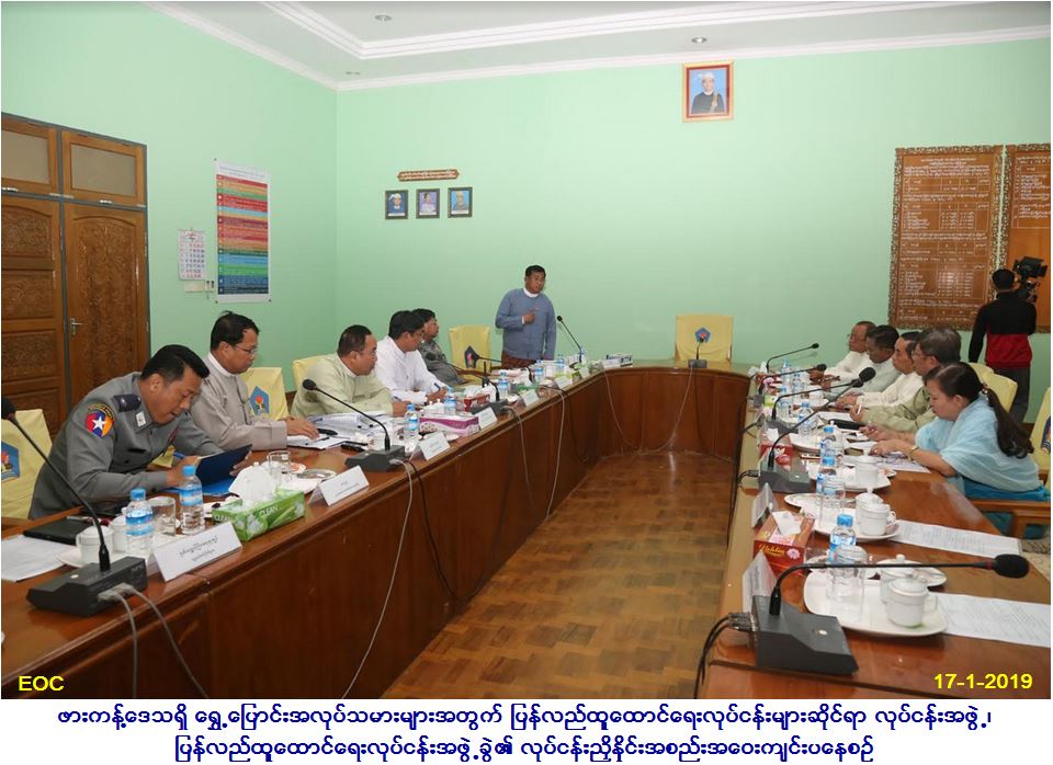 ဖားကန့်ဒေသရှိ ရွှေ့ပြောင်းအလုပ်သမား များအတွက် ပြန်လည်ထူထောင်ရေးလုပ်ငန်း များဆိုင်ရာ လုပ်ငန်းအဖွဲ့၊ ပြန်လည် ထူထောင်ရေးလုပ်ငန်းအဖွဲ့ခွဲ၏ လုပ်ငန်းညှိနှိုင်းအစည်းအဝေး (၁/၂၀၁၉)ကို ယနေ့ နံနက်ပိုင်းတွင် လူမှုဝန်ထမ်း၊ ကယ်ဆယ်ရေးနှင့် ပြန်လည်နေရာချထားရေး ဝန်ကြီးဌာနရှိ ဝန်ကြီးရုံးအစည်းအဝေးခန်းမ၌ ကျင်းပပြုလုပ်ခဲ့ပါသည်။