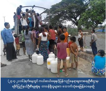 ကယ်ဆယ်ရေးနှင့် ပြန်လည်နေရာချထားရေးဦးစီးဌာန၊ ရခိုင်ပြည်နယ်ဦးစီးမှူးရုံးမှ တာဝန်ရှိသူများသည် (၂၄-၄-၂၀၁၆) ရက်နေ့တွင် ရခိုင်ပြည်နယ်၊ ပုဏ္ဏားကျွန်းမြို့နယ်၊ စေတီရင်းကျေးရွာသို့ သောက်သုံးရေ (၁၀၀၀) ဂါလံ ဖြန့်ဝေပေးခဲ့ကြောင်း သိရှိရပါသည်။