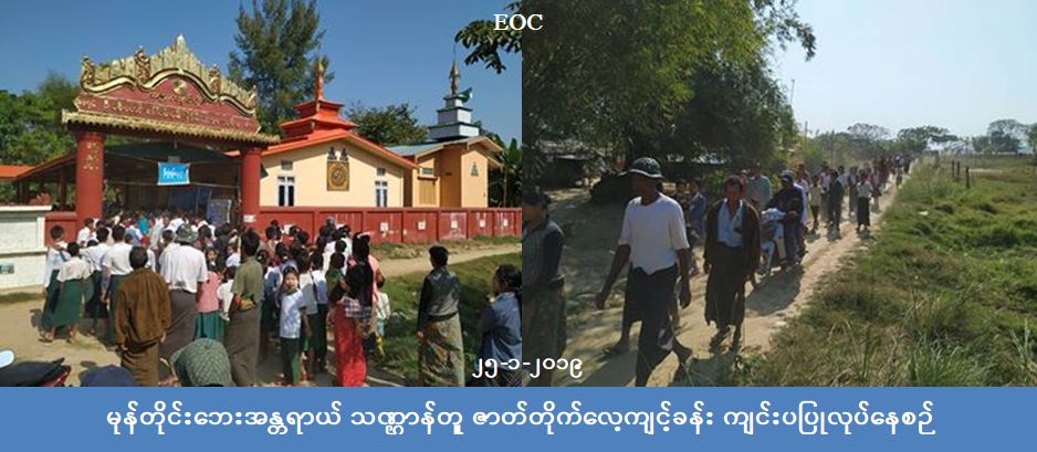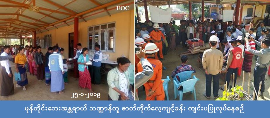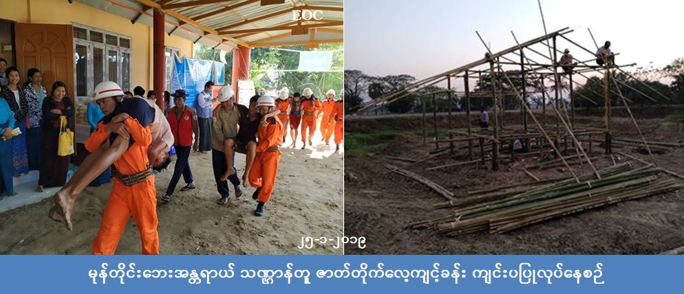 လူမှုဝန်ထမ်း၊ ကယ်ဆယ်ရေးနှင့် ပြန်လည်နေရာချထားရေး ဝန်ကြီးဌာန၊ ဘေးအန္တရာယ်ဆိုင်ရာစီမံခန့်ခွဲမှုဦးစီး ဌာန၊ ပဲခူးတိုင်းဒေသကြီးဦးမှူးရုံးမှ တာဝန်ရှိသူများသည် ပဲခူးတိုင်းဒေသကြီး၊ ပဲခူးခရိုင်၊ ကဝမြို့နယ်၊ အုန်းနှဲကျေးရွာအုပ်စု၊ ဘဏ္ဍာကျေးရွာ၌ “မုန်တိုင်းဘေးအန္တရာယ် သဏ္ဌာန်တူဇာတ်တိုက် လေ့ကျင့်ခန်း”ကို ကဝမြို့နယ်အဆင့် သဘာဝဘေးအန္တရာယ်ဆိုင်ရာစီမံခန့်ခွဲမှု အဖွဲ့ဝင်ဌာနဆိုင်ရာများ၊ မြို့နယ်အတွင်းရှိ ရပ်ကွက် /ကျေးရွာများမှအုပ်ချုပ်ရေးမှူး/စာရေးနှင့် ရပ်မိရပ်ဖများ၊ ဆရာ/ ဆရာမနှင့် ကျောင်းသား/သူများ၊ ကျေးရွာသူ /သားပြည်သူထုပူပေါင်းအင်အား (၇၂၉) ဦးတို့ဖြင့် (၂၅-၁-၂၀၁၉) နေ့၊ (၀၈:၀၀) နာရီချိန်မှ (၁၁:၃၀) နာရီချိန်အထိ ဆောင်ရွက်ခဲ့ပါသည်။