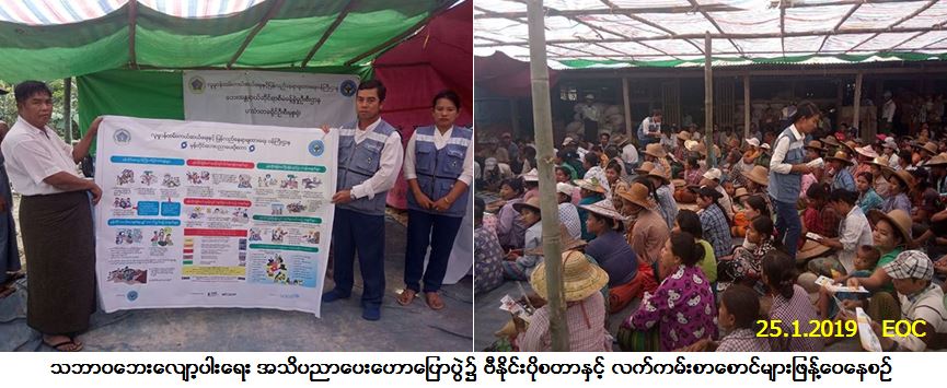 လူမှုဝန်ထမ်း၊ ကယ်ဆယ်ရေးနှင့် ပြန်လည်နေရာချထားရေးဝန်ကြီးဌာန၊ ဘေးအန္တရာယ်ဆိုင်ရာစီမံခန့်ခွဲမှုဦးစီးဌာန၊ ဟင်္သာတခရိုင်ဦးစီးမှူးရုံးမှ တာဝန်ရှိသူများသည် (၂၅-၁-၂၀၁၉) ရက်နေ့၊ (၁၂း၃၀) နာရီအချိန်တွင် မြန်အောင်မြို့နယ်၊ ညောင်ဝိုင်းအုပ်စု၊ ညောင်ဝိုင်းကျေးရွာ၌ သဘာဝဘေးလျော့ပါးရေး အသိပညာပေးဟောပြောပွဲ ကျင်းပပြုလုပ်ခဲ့ရာ ညောင်ဝိုင်းအုပ်စုအတွင်းရှိ ပြည်သူ (၃၀၀) ဦးတက်ရောက်ခဲ့ပြီး တက်ရောက်လာသူများအား သဘာဝဘေးအသိပညာပေး လက်ကမ်းစာစောင်မျာဖြန့်ဝေခြင်း၊ ကျေးရွာအုပ်ချုပ်ရေးမှူးထံသို့ ဗွီနိုင်းပိုစတာများ ပေးအပ်ခြင်းတို့ဆောင်ရွက်ခဲ့ပါကြောင်း သတင်းရရှိပါသည်။