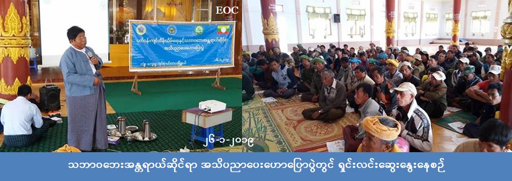 လူမှုဝန်ထမ်း၊ ကယ်ဆယ်ရေးနှင့် ပြန်လည်နေရာချထားရေးဝန်ကြီးဌာန၊ ဘေးအန္တရာယ်ဆိုင်ရာစီမံ ခန့်ခွဲမှုဦးစီး ဌာန၊ ရှမ်းပြည်နယ်ဦးစီးမှူးရုံးမှတာဝန်ရှိသူ များသည် (၂၆-၁-၂၀၁၉) ရက်နေ့၊ နံနက်ပိုင်းတွင် ပင်းတယမြို့နယ်၊ ကျုံးကျေးရွာ အုပ်စု၊ ကျုံးမွေတော်ဘုန်းကြီးကျောင်း၌လည်းကောင်း၊ နေ့လည်ပိုင်းတွင် ကူးကော်ကျေးရွာအုပ်စု ချုပ်ချက် ဘုန်းတော်ကြီး ကျောင်း၌လည်းကောင်း မိုးခေါင်ရေရှားဘေးအပါအဝင် သဘာဝဘေးအသိပညာပေးဟောပြောပွဲ ကျင်းပပြုလုပ်ခဲ့ရာ နံနက်ပိုင်းတွင် (၁၇၀) ဦးတက်ရောက်ခဲ့ပြီး နေ့လည်ပိုင်းတွင် (၇၀) ဦး စုစုပေါင်း (၂၄၀) ဦး တက်ရောက် ခဲ့ပါကြောင်း သိရှိရ ပါသည်။