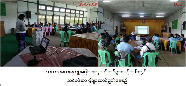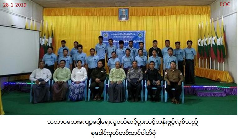 လူမှုဝန်ထမ်း၊ ကယ်ဆယ်ရေးနှင့်ပြန်လည်နေရာချထားရေးဝန်ကြီးဌာန၊ ဘေးအန္တရာယ်ဆိုင်ရာစီမံခန့်ခွဲ မှုဦးစီးဌာန၊ စစ်ကိုင်းတိုင်းဒေသကြီးဦးစီးမှူးရုံးမှ တာဝန်ရှိသူများသည် (၂၈-၁-၂၀၁၉) ရက်နေ့တွင် ယင်းမာပင်ခရိုင်၊ ပုလဲမြို့နယ်၊ အထွေထွေအုပ်ချုပ်ရေးဦးစီးဌာန အစည်းအဝေးခန်းမ၌ဖွင့်လှစ်သည့် သဘာဝဘေး လျော့ပေါ့ရေး လူငယ်ဆင့်ပွားသင့်တန်းတွင် သဘာဝဘေးအန္တရာယ်ဆိုင်ရာဝေါဟာရများ၊ သဘာဝဘေး အန္တရာယ်များအကြောင်း ဟောပြောပို့ချခဲ့ပြီး သင်တန်းသား/သင်တန်းသူများအား တီရှပ်၊မိုးကာ၊ဦးထုပ်၊ ဓာတ်မီးစသည့် သင်တန်းသုံးပစ္စည်းများကိုဝေငှခဲ့ပြီး သင့်တန်းဖွင့်ပွဲအခမ်းအနားသို့ ဌာနဆိုင်ရာများမှ တာဝန်ရှိသူများ၊ ရပ်မိ/ရပ်ဖများတက်ရောက်ခဲ့ပြီး အဆိုပါသင်တန်းသို့ သင်တန်းသား/သင်တန်းသူ(၃၀)ဦးဖြစ် သင်တန်းကာလမှာ (၂၈-၁-၂၀၁၉)ရက်နေ့မှ (၃၀-၁-၂၀၁၉)ရက်နေ့ထိ (၃)ရက်တာ ကြာမြင့်မည်ဖြစ်ကြောင်း သတင်းရရှိပါသည်။