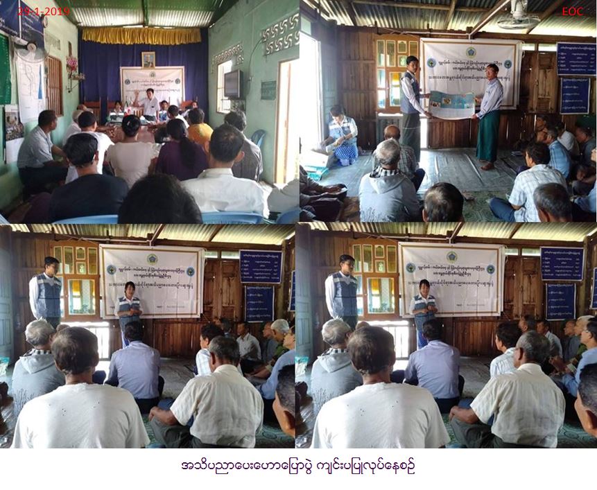 လူမှုဝန်ထမ်း၊ ကယ်ဆယ်ရေးနှင့် ပြန်လည်နေရာချထားရေးဝန်ကြီးဌာန၊ ဘေးအန္တရာယ်ဆိုင်ရာစီမံခန့်ခွဲမှုဦးစီးဌာန၊ မွန်ပြည်နယ်၊ ချောင်းဆုံမြို့နယ်ဦးစီးမှူးရုံးမှ တာဝန်ရှိသူများသည် (၂၈-၁-၂၀၁၉)ရက်နေ့၌ ချောင်းဆုံမြို့နယ်၊ နတ်မှော်ကျေးရွာ အုပ်ချုပ်ရေးမှူးရုံးတွင် ပြည်သူလူထု(၅၀)ဦးဖြင့်လည်းကောင်း၊ (၁၃း၀၀)နာရီအချိန်တွင် ချောင်းဆုံမြို့နယ်၊ ဘိုးနတ်ကျေးရွာ အုပ်ချုပ်ရေးမှူးရုံး၌ ပြည်သူလူထု(၅၀)ဦးတို့ကို သဘာဝဘေး အသိပညာများဟောပြောပွဲပြုလုပ်ခဲ့ကြောင်း သိရှိရပါသည်။