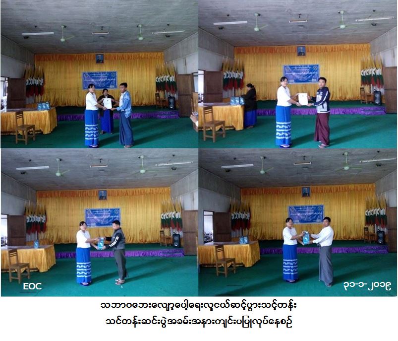 လူမှုဝန်ထမ်း၊ ကယ်ဆယ်ရေးနှင့်ပြန်လည်နေရာချထားရေးဝန်ကြီးဌာန၊ ဘေးအန္တရာယ်ဆိုင်ရာစီမံခန့်ခွဲမှု ဦးစီးဌာန၊ စစ်ကိုင်းတိုင်းဒေသကြီးဦးစီးမှူးရုံးမှ တာဝန်ရှိသူများသည် ယင်းမာပင်ခရိုင်၊ ပုလဲမြို့နယ်၊ အထွေထွေ အုပ်ချုပ်ရေးဦးစီးဌာန အစည်းအဝေးခန်းမ၌ (၂၈-၁-၂၀၁၉)ရက်နေ့မှ (၃၀-၁-၂၀၁၉)ရက်နေ့ထိ ဖွင့်လှစ်သည့် သဘာဝဘေး လျော့ပေါ့ရေးလူငယ်ဆင့်ပွားသင့်တန်းကို သင်တန်းသား/ သင်တန်းသူ(၃၀)ဦးဖြင့် ဖွင့်လှစ်ခဲ့ပြီး (၃၀-၁-၂၀၁၉)ရက်နေ့တွင် သင်တန်းဆင်းလက်မှတ်များနှင့် ပုလဲမြို့နယ်၊ အထွေထွေအုပ်ချုပ်ရေးဦးစီးဌာနအား hand speakerနှင့် Radio များပေးခဲ့ကြောင်း သတင်းရရှိပါသည်။