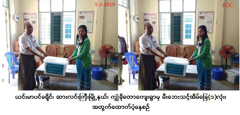 လူမှုဝန်ထမ်း၊ ကယ်ဆယ်ရေးနှင့်ပြန်လည်နေရာချထားရေးဝန်ကြီးဌာန၊ ဘေးအန္တရာယ်ဆိုင်ရာစီမံခန့်ခွဲမှုဦးစီးဌာန၊ စစ်ကိုင်းတိုင်းဒေသကြီးဦးစီးမှူးရုံးမှ တာဝန်ရှိသူများသည် (၃၁-၁-၂၀၁၉)ရက်နေ့တွင် စစ်ကိုင်းတိုင်းဒေသကြီး၊ ယင်းမာပင်ခရိုင်၊ ဆားလင်းကြီးမြို့နယ်၊ ကျွဲခိုတောကျေးရွာအုပ်စု၊ ကျွဲခိုတောကျေးရွာမှ မီးဘေးဖြစ်ခဲ့ရာ မီးဘေးသင့်အိမ်ခြေ(၁)လုံး၊ အိမ်ထောင်စု(၁)စုအတွက် ကယ်ဆယ်ရေးပစ္စည်း (၁၆)မျိုး၊ မီးဘေးသင့်လူဦးရေ(၄)ဦးအတွက် ဆန်ရိက္ခာဖိုးထောက်ပံ့ငွေ (၈၄၀၀/-)၊ အိမ်ဆောက်ပစ္စည်းဖိုးထောက်ပံ့ငွေ(၁၀၀၀၀၀/-)တို့အား (၁-၂-၂၀၁၉)ရက်နေ့တွင် သွားရောက်ထောက်ပံ့ ကြောင်းသတင်းရရှိပါသည်။