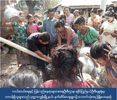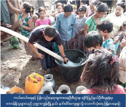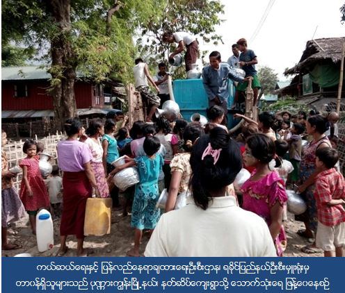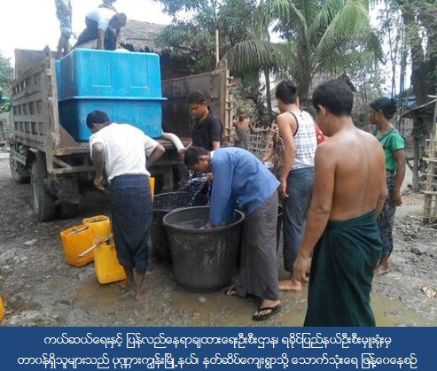 ကယ်ဆယ်ရေးနှင့် ပြန်လည်နေရာချထားရေးဦးစီးဌာန၊ ရခိုင်ပြည်နယ်ဦးစီးမှူးရုံးမှ တာဝန်ရှိသူများသည် (၂၅-၄-၂၀၁၆) ရက်နေ့တွင် ရခိုင်ပြည်နယ်၊ ပုဏ္ဏားကျွန်းမြို့နယ်၊ နတ်ဆိပ်ကျေးရွာရှိ ကျေးရွာနေပြည်သူများအတွက် သောက်သုံးရေ ဂါလံ (၁၀၀၀) ဖြန့်ဝေပေးခဲ့ကြောင်း သိရှိရပါသည်။