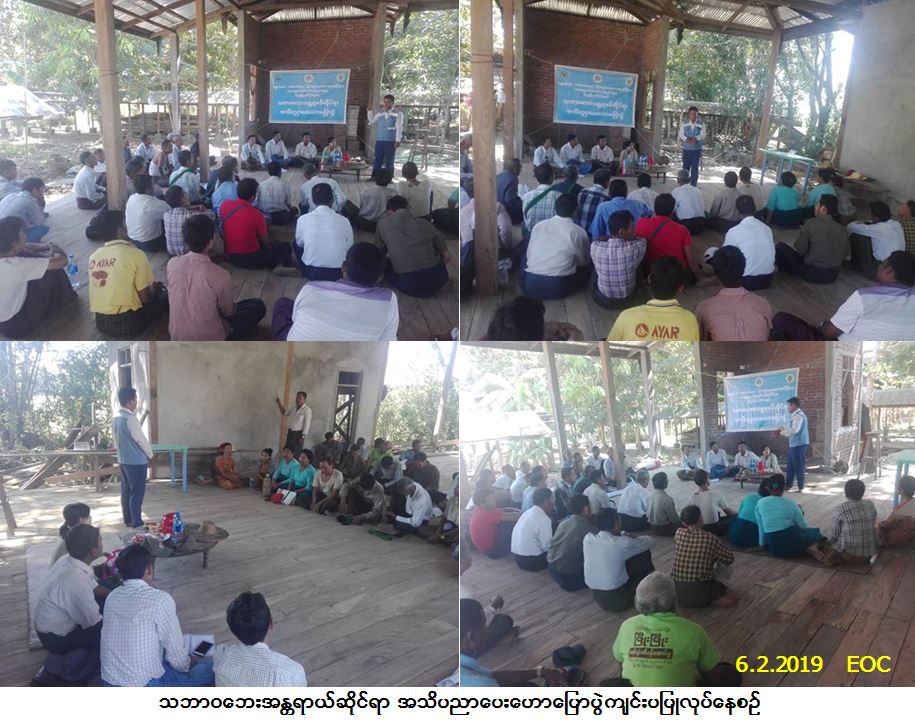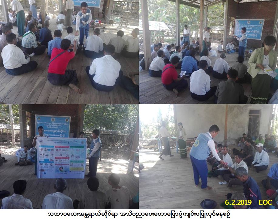 လူမှုဝန်ထမ်း၊ ကယ်ဆယ်ရေးနှင့် ပြန်လည်နေရာချထားရေးဝန်ကြီးဌာန၊ ဘေးအန္တရာယ်ဆိုင်ရာ စီမံခန့်ခွဲမှုဦးစီးဌာန၊ မိုးညိုမြို့နယ်ဦးစီးမှူးရုံးမှတာဝန်ရှိသူများသည် (၆-၂-၂၀၁၉) ရက်နေ့၊ နေ့လယ် (၁း၀၀) နာရီအချိန်တွင် လက်ပံတန်းမြို့နယ်၊ ကွမ်းသီးတစ်ပင်ကျေးရွာအုပ်စု၊ အရိုးကုန်းကျေးရွာ၊ ဘုန်းတော်ကြီးကျောင်း၌ သဘာဝ ဘေးအန္တရာယ်ဆိုင်ရာ အသိပညာပေးဟောပြောပွဲကျင်းပပြုလုပ်ခဲ့ရာ ကျေးရွာအုပ်စုအုပ်ချုပ်ရေးမှူး၊ ရပ်မိ/ ရပ်ဖများ၊ ကျေးရွာပြည်သူ့စစ်များ၊ အရန်မီးသတ်တပ်ဖွဲ့ဝင်များ၊ ကျေးရွာမိခင်နှင့်ကလေးစောင့်ရှောက်ရေး အဖွဲ့ဝင်များ၊ ကျေးရွာသူ/သားများနှင့် ပတ်ဝန်းကျင်ရွာမှ ကျေးရွာအုပ်စုအုပ်ချုပ်ရေးမှူးများ စုစုပေါင်း (၁၅၀) ဦးခန့် တက်ရောက်ခဲ့ပြီး တက်ရောက်လာသူများအား လက်ကမ်းစာစောင်းများ ဖြန့်ဝေခဲ့ပါကြောင်း သတင်းရရှိပါသည်။