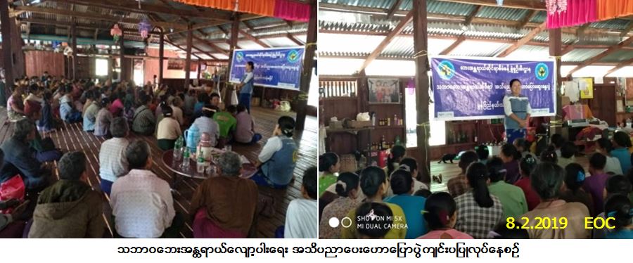 လူမှုဝန်ထမ်း၊ ကယ်ဆယ်ရေးနှင့် ပြန်လည်နေရာချထားရေးဝန်ကြီးဌာန၊ ဘေးအန္တရာယ်ဆိုင်ရာ စီမံခန့်ခွဲမှုဦးစီးဌာန၊ သထုံခရိုင်ဦးစီးမှူးရုံးမှတာဝန်ရှိသူများသည် (၈-၂-၂၀၁၉) ရက်နေ့၊ (၁၀:ဝဝ) နာရီမှ (၁၁း၃၀) နာရီအချိန်ထိ မွန်ပြည်နယ်၊ သထုံမြို့နယ်၊ ကျုံမိန်ကျေးရွာ၊ ဘုန်းကြီးကျောင်း (ဓမ္မာရုံ) ၌ သဘာဝဘေးအန္တရာယ်လျော့ပါးရေး အသိပညာပေးဟောပြောပွဲကျင်းပပြုလုပ်ခဲ့ရာ ကျေးရွာသူ/သား (၁၂၀) ဦးခန့်တက်ရောက်ခဲ့ပါသည်။ အဆိုပါ အခမ်းအနားပြီးနောက် နံရံကပ်ပိုစတာကပ်ခြင်းတို့ ဆောင်ရွက်ခဲ့ပါကြောင်းသတင်းရရှိပါသည်။