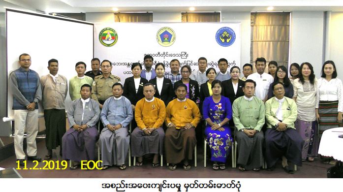 လူမှုဝန်ထမ်း၊ ကယ်ဆယ်ရေးနှင့် ပြန်လည်နေရာချထားရေးဝန်ကြီးဌာန၊ ဘေးအန္တရာယ်ဆိုင်ရာ စီမံခန့်ခွဲမှုဦးစီးဌာန၊ ဧရာဝတီတိုင်းဒေသကြီးဦးစီးမှူးရုံးမှတာဝန်ရှိသူများနှင့် ADB တို့ပူးပေါင်း၍ ပုသိမ်မြို့၊ စွမ်းဟိုတယ်၌ (၁၁-၂-၂၀၁၉) ရက်နေ့၊ (၀၉း၃၀) နာရီအချိန်တွင် ဧရာဝတီတိုင်းဒေသကြီး သဘာဝဘေးအန္တရာယ်ဆိုင်ရာစီမံခန့်ခွဲမှု စီမံချက်ပြင်ဆင်ရေးဆွဲရန်ကိစ္စနှင့်စပ်လျဉ်း၍ ပထမအကြိမ်အလုပ်အမှုဆောင်အစည်းအဝေး ဖွင့်ပွဲအခမ်းအနား ကျင်းပပြုလုပ်ခဲ့ရာ လွှတ်တော်ကိုယ်စားလှယ်များ၊ ဌာနဆိုင်ရာမှတာဝန်ရှိသူများ စုစုပေါင်းလူဦးရေ (၃၀) ဦးတက်ရောက်ခဲ့ပါကြောင်း သတင်းရရှိပါသည်။
