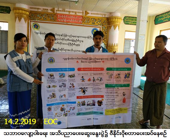 လူမှုဝန်ထမ်း၊ ကယ်ဆယ်ရေးနှင့် ပြန်လည်နေရာချထားရေးဝန်ကြီးဌာန၊ ဘေးအန္တရာယ်ဆိုင်ရာ စီမံခန့်ခွဲမှုဦးစီးဌာန၊ ဧရာဝတီတိုင်းဒေသကြီးဦးစီးမှူးရုံးမှတာဝန်ရှိသူများသည် (၁၄-၂-၂၀၁၉) ရက်နေ့တွင် ပုသိမ်ခရိုင်၊ ကန်ကြီးထောင့် မြို့နယ်၊ ရှမ်းရွာကျေးရွာအုပ်စု၊ ရှမ်းရွာကျေးရွာ၌ သဘာဝလျော့ပါးရေး အသိပညာပေးဆွေးနွေး ပွဲကျင်းပ ပြုလုပ်ခဲ့ရာ ပြည်သူ (၁၀၀) ဦး တက်ရောက်ခဲ့ပြီး တက်ရောက်လာသူများအား သဘာဝဘေးအန္တရာယ် များနှင့်စပ်လျဉ်းသည့် လက်ကမ်းစာစောင် (မီးဘေး၊ ရေဘေး၊ မုန်တိုင်းဘေး၊ ငလျင်ဘေး၊ ဆူနာမီဘေး၊ မိုးကြိုးဘေး၊ မိုးခေါင်ရေရှားဘေး) (၈) မျိုးအား ဖြန့်ဝေခဲ့ပါသည်။ ဆက်လက်၍ ကျေးရွာရှိပြည်သူများ သဘာဝဘေးနှင့်စပ်လျဉ်း၍ အသိပညာရရှိစေရန် ကျေးရွာအုပ်ချုပ်ရေးမှူးထံသို့ မီးဘေးအသိပညာပေး ဗီနိုင်းပိုစတာအား ပေးအပ်ခဲ့ပါကြောင်း သတင်းရရှိပါသည်။