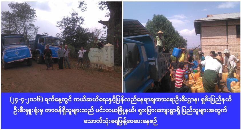 လူမှု၀န်ထမ်း၊ ကယ်ဆယ်ရေးနှင့်ပြန်လည်နေရာချထားရေးဝန်ကြီးဌာန၊ ကယ်ဆယ်ရေးနှင့်ပြန်လည်နေရာချထားရေးဦးစီး ဌာန ရှမ်းပြည်နယ်ဦးစီးမှူးရုံးမှ တာဝန်ရှိသူများသည် ပင်းတယမြို့နယ်၊ ရှားပြားကျေးရွာရှိ သောက်သုံးရေရှားပါး လျက်ရှိသော ပြည်သူများအတွက် အိမ်ခြေ (၂၂၀) စုအတွက် ရေ (၂၀၀၀) ဂါလန်ကို (၂၄-၄-၂၀၁၆) ရက်နေ့တွင် သွားရောက် ဖြန့်ဝေပေးခဲ့ပါသည်။