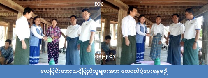 လူမှုဝန်ထမ်း၊ ကယ်ဆယ်ရေးနှင့် ပြန်လည်နေရာချထားရေးဝန်ကြီးဌာန၊ ဘေးအန္တရာယ်ဆိုင်ရာ စီမံခန့်ခွဲမှု ဦးစီးဌာန၊ ကောလင်းမြို့နယ်ဦးစီးမှူးရုံးမှ တာဝန်ရှိသူများသည် ကောလင်းမြို့နယ်၊ အင်ပင်သာကျေးရွာ အုပ်စု၊ စစ်တောရွာနှင့် ဝါးရုံခုံရွာတို့တွင် (၁၆.၂.၂၀၁၉) ရက်နေ့ (၂၂:၀၀)အချိန်တွင် ဖြစ်ပွားခဲ့သော လေပြင်းတိုက်ခတ်မှုကြောင့် အမိုးလှန်ပျက်စီးသွားသော ဘုန်းကြီးကျောင်း (၁) ကျောင်း၊ အိမ်ခြေ (၁၇) လုံးပျက်စီးခဲ့ရာ၊ အိမ်ထောင်စု (၁၇) စုစာ အတွက် (၁) အိမ်ထောင်လျှင် ကယ်ဆယ်ရေးပစ္စည်း ( ၅) မျိုးစီ၊ စုစုပေါင်း အိမ်ဆောက်ပစ္စည်း ဖိုး ထောက်ပံ့ငွေ (၄၆၀,၀၀၀/-) ကျပ်တို့အား (၁၉-၂-၂၀၁၉)ရက်နေ့တွင် ထောက်ပံ့ပေးခဲ့ကြောင်း သိရှိရပါသည်။