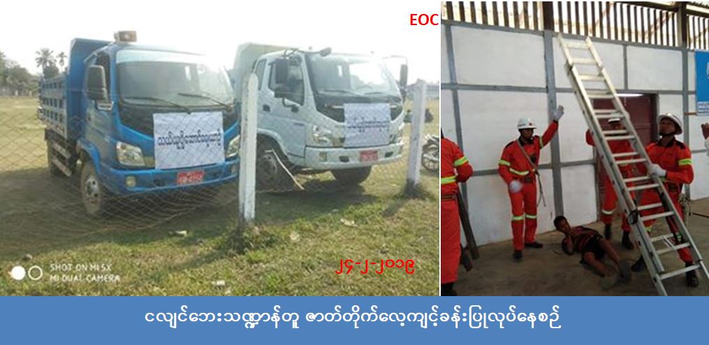လူမှုဝန်ထမ်း၊ ကယ်ဆယ်ရေးနှင့် ပြန်လည်နေရာချထားရေးဝန်ကြီးဌာန၊ ဘေးအန္တရာယ်ဆိုင်ရာ စီမံခန့်ခွဲမှု ဦးစီးဌာန၊ ခန္တီးခရိုင်ဦးစီးမှူးရုံးမှ တာဝန်ရှိသူများသည် (၂၄-၂-၂၀၁၉) နေ့ (၀၉:၀၀)နာရီအချိန်တွင် ခန္တီးမြို့ပေါ် (၃) ရပ်ကွက်ရှိပြည်သူများ၊ ဌာနဆိုင်ရာတာဝန်ရှိသူများ၊ စုစုပေါင်း အင်အား (၁၅၀)ဦးဖြင့် ခန္တီးမြို့နယ် အားကစား ခန်းမ၌ ငလျင်ဘေးသဏ္ဍာန်တူ ဇာတ်တိုက်လေ့ကျင့်ခန်း ပြုလုပ်ခဲ့ကြောင်း သိရှိရပါသည်။