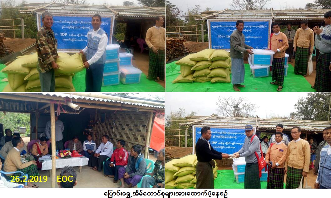 လူမှုဝန်ထမ်း၊ ကယ်ဆယ်ရေးနှင့် ပြန်လည်နေရာချထားရေးဝန်ကြီးဌာန၊ ဘေးအန္တရာယ်ဆိုင်ရာစီမံ ခန့်ခွဲမှုဦးစီးဌာန၊ ဗန်းမော်ခရိုင်ဦးစီးမှူးရုံးမှတာဝန်ရှိသူများသည် ဗန်းမော်မြို့နယ်အထွေထွေအုပ်ချုပ်ရေး မှူး၊ သက်ဆိုင်ရာဌာန အကြီးအကဲများနှင့်အတူ ဗန်းမော်မြို့နယ်၊ ရိုးကြီးရွာမ IDP စခန်းမှ နန့်လှိုင်ရွာသစ်ကုန်းသို့ ပြောင်းရွှေ့သွားသည့် အိမ်ထောင်စုများအား (၂၆-၂-၂၀၁၉) ရက်နေ့၊ နံနက် (၁၀း၃၀) နာရီအချိန်တွင် ထောက်ပံ့မှုများဆောင်ရွက်ခဲ့ရာ ပြောင်းရွှေ့အိမ်ထောင်စု (၁၁) စုအတွက် အိမ်ဆောက်ပစ္စည်းဖိုးထောက်ပံ့ငွေ (၁,၁၀၀,၀၀၀/-) ကျပ်၊ ကယ်ဆယ်ရေးပစ္စည်း (၁၆) မျိုး အိမ်ထောင်စု (၁၁) စုစာနှင့် လူဦးရေ (၆၃) ဦးအတွက် ဆန်ရိက္ခာ (၁) လစာ (၁၉) အိတ်၊ (၁၆) ပြည် (၄) လုံးအား သွားရောက်ထောက်ပံ့ပေးအပ်ခဲ့ပါကြောင်း သတင်းရရှိပါသည်။