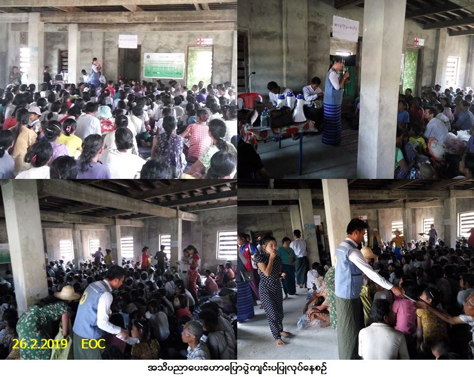 လူမှုဝန်ထမ်း၊ ကယ်ဆယ်ရေးနှင့် ပြန်လည်နေရာချထားရေးဝန်ကြီးဌာန၊ ဘေးအန္တရာယ်ဆိုင်ရာစီမံခန့်ခွဲမှုဦးစီးဌာန၊ ကျောက်ဖြူခရိုင်ဦးစီးမှူးရုံးမှတာဝန်ရှိသူများနှင့် လူမှုဖွံ့ဖြိုးတိုးတက်ရေးအသင်း (CDA) တို့ပူးပေါင်း၍ (၂၆-၂-၂၀၁၉) ရက်နေ့၊ (၁၀း၀၀) နာရီအချိန်မှ (၁၂း၀၀) နာရီအချိန်အထိ ကျောက်ဖြူမြို့နယ်၊ အဝတောင်ကျေးရွာအုပ်စု၊ဒွေးချကျေးရွာ၌ မုန်တိုင်းသဏ္ဍန်တူဇာတ်တိုက်လေ့ကျင့်ခန်းနှင့် ဘေးအန္တရာယ်ဆိုင်ရာအသိပညာပေးဟောပြောပွဲ ကျင်းပပြုလုပ်ခြင်းတို့ဆောင်ရွက်ခဲ့ရာ မြို့နယ်သဘာဝဘေးအန္တရာယ်စီမံခန့်ခွဲမှုကော်မတီဝင်များ၊ ကျောက်ဖြူခရိုင်အထွေထွေအုပ်ချုပ်ရေးဦးဌာမှ တာဝန်ရှိသူများ၊ ဌာနဆိုင်ရာများ၊ လူမှုဖွံ့ဖြိုးတိုးတက်ရေးအသင်းမှတာဝန်ရှိသူများ၊ ဒွေးချကျေးရွာမှ ရွာသူ/သားများနှင့် ကျောင်းသူ/သားများ၊ စုစုပေါင်းလူဦးရေ (၃၉၅) ဦးခန့် တက်ရောက်ခဲ့ပါသည်။ အဆိုပါဟောပြောပွဲ၌ မုန်တိုင်းသဏ္ဍန်တူဇာတ်တိုက်လေ့ကျင့်ခန်းဆောင်ရွက်ရသည့် ရည်ရွယ်ချက်များ၊ သဘာဝဘေးနှင့်စပ်လျဉ်း၍ ဆောင်ရန်/ရှောင်ရန်အချက်များ၊ မုန်တိုင်းဘေးဒဏ် ခံရလေ့ရှိသောဒေသများ၌ ဘေး အန္တရာယ်ကျရောက်လာပါက ကြံ့ကြံ့ခံရင်ဆိုင်တုံ့ပြန်နိုင်ရန်နှင့် ပြည်သူများ၏ အသက်စည်းစိမ်ထိခိုက်မှုသက်သာစေနိုင်ရန်ရည်ရွယ်၍ ဆောင်ရွက်ခဲ့ခြင်းဖြစ်ကြောင်း ရှင်းလင်းဟောပြောခဲ့ပြီး တက်ရောက်လာသူများအား လက်ကမ်းစာစောင်များ၊ ခေါက်ဆွဲခြောက်များ၊ မုန့်များနှင့် ရေသန့်ဗူးများ ဖြန့်ဝေပေးခဲ့ပါကြောင်း သတင်းရရှိပါသည်။
