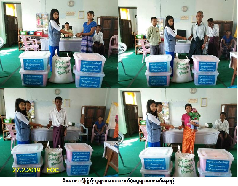 လူမှုဝန်ထမ်း၊ ကယ်ဆယ်ရေးနှင့် ပြန်လည်နေရာချထားရေးဝန်ကြီးဌာန၊ ဘေးအန္တရာယ်ဆိုင်ရာ စီမံခန့်ခွဲမှုဦးစီးဌာန၊ မြောက်ဦးခရိုင်ဦးစီးမှူးရုံးမှတာဝန်ရှိသူများသည် မင်းပြားမြို့နယ်၊ သင်္ဂနက်ကျေးရွာအုပ်စု၊ သင်္ဂနက်ကျေးရွာ၌ (၂၅-၂-၂၀၁၉) ရက်နေ့တွင်ဖြစ်ပွားခဲ့သောမီးဘေးကြောင့် နေအိမ် (၄) လုံး၊ အိမ်ထောင်စု (၄) စုမှ လူဦးရေ (၁၃) ဦးဘေးသင့်ခဲ့ရာ အဆိုပါဘေးသင့်ပြည်သူများအတွက် ကယ်ဆယ်ရေးပစ္စည်း (၁၅) မျိုး (၄) အိမ်ထောင်စုစာ၊ အိမ်ဆောက်ပစ္စည်းဖိုးထောက်ပံ့ငွေ (၄၀၀,၀၀၀/-) ကျပ်နှင့် ဆန်ရိက္ခာ (၇) ရက်စာ (၂၂) ပြည်၊ (၆) ဗူးတို့အား (၂၇-၂-၂၀၁၉) ရက်နေ့တွင် ဘေးသင့်ပြည်သူများ၏လက်ဝယ်အရောက် ထောက်ပံ့ပေးအပ်ခဲ့ပါကြောင်း သတင်းရရှိပါသည်။