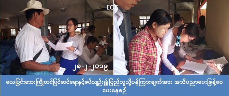 လူမှုဝန်ထမ်း၊ ကယ်ဆယ်ရေးနှင့် ပြန်လည်နေရာချထားရေးဝန်ကြီးဌာန၊ ဘေးအန္တရာယ်ဆိုင်ရာစီမံခန့်ခွဲမှုဦးစီးဌာန၊ မော်လမြိုင်ကျွန်းမြို့နယ်ဦးစီးမှူးရုံးမှ တာဝန်ရှိသူများသည် (၂၈-၂-၂၀၁၉) ရက်နေ့၊(၁၀:၀၀) နာရီ အချိန်တွင် မော်လမြိုင် ကျွန်းမြို့နယ် အထွေထွေအုပ်ချုပ်ရေးဦးစီးဌာန၊ အစည်းအဝေးခန်းမ၌ ကျင်းပပြုလုပ်သော ကျေးရွာအုပ်ချုပ်ရေးမှူးများ လပတ်အစည်းအဝေးတွင် လေပြင်းဘေးကြိုတင်ပြင်ဆင်ရေးနှင့်စပ်လျဉ်း၍ ပြည်သူသို့ပန်ကြားချက်အား အသိပညာပေး ဖြန့်ဝေပေးခဲ့ကြောင်း သိရှိရပါသည်။