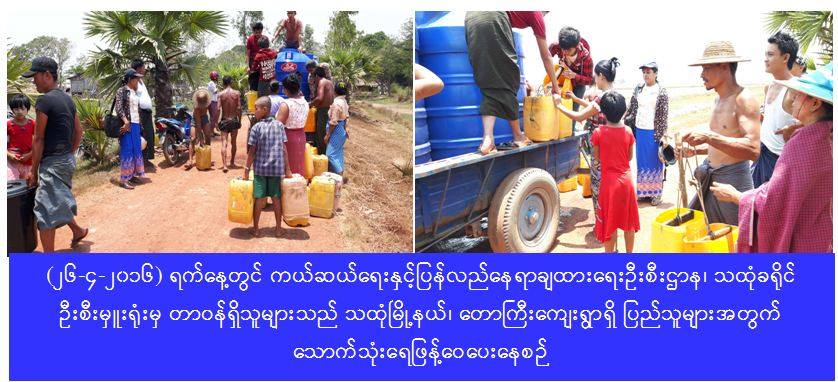 လူမှု၀န်ထမ်း၊ ကယ်ဆယ်ရေးနှင့်ပြန်လည်နေရာချထားရေးဝန်ကြီးဌာန၊ ကယ်ဆယ်ရေးနှင့်ပြန်လည် နေရာချထားရေးဦးစီးဌာန သထုံခရိုင်ဦးစီးမှူးရုံးမှ ဒုတိယညွှန်ကြားရေးမှူး ဒေါ်လှကေသီမာ နှင့် တာဝန်ရှိ သူများသည် သထုံမြို့နယ်၊ တောကြီးကျေးရွာရှိ သောက်သုံးရေရှားပါးလျက်ရှိသော ပြည်သူများအတွက် ရေ (၁၂၀၀) ဂါလန်ကို (၂၆-၄-၂၀၁၆) ရက်နေ့တွင် သွားရောက် ဖြန့်ဝေပေးခဲ့ပါသည်။