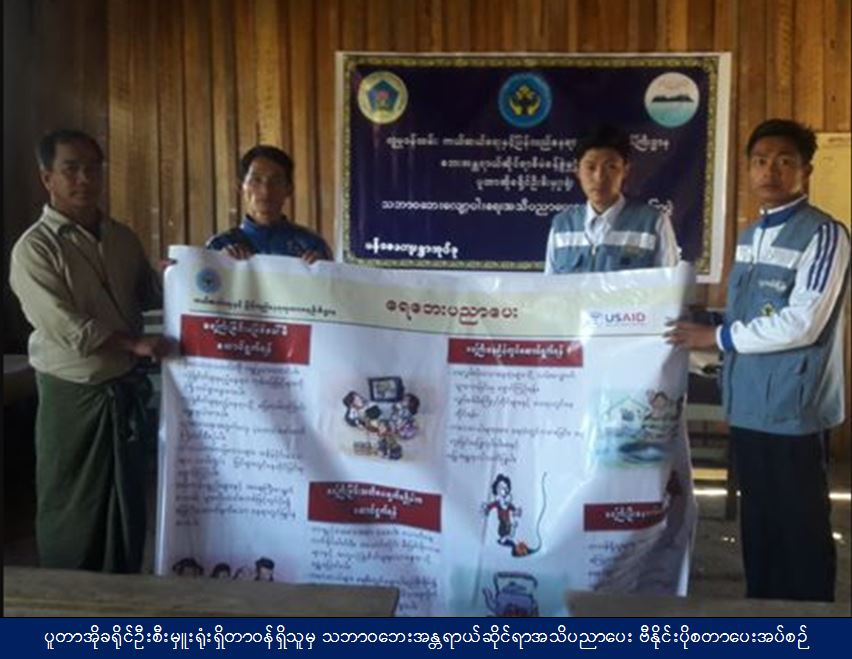 လူမှုဝန်ထမ်း၊ ကယ်ဆယ်ရေးနှင့် ပြန်လည်နေရာချထားရေးဝန်ကြီးဌာန၊ ဘေးအန္တရာယ်ဆိုင်ရာစီမံခန့်ခွဲမှုဦးစီးဌာန၊ ပူတာအိုခရိုင်ဦးစီးမှူးရုံးမှ တာဝန်ရှိသူများသည် (၂-၃-၂၀၁၉)နေ့ (၁၁ ၀၀) နာရီချိန်မှ(၁၂ ၀၀) အချိန်ထိ ပူတာအိုမြို့နယ်၊ မန်စေကျေးရွာအုပ်စု၊ အထက်ဆန်ဂေါင်ကျေးရွာရှိ ကျေးရွာသူ/သား(၆၀)ဦးအား လည်းကောင်း (၁၃ ၀၀)မှ (၁၄ ၀၀)နာရီအချိန်ထိ မန်စေကျေးရွာအုပ်စု၊ မူငုံရ်ကျေးရွာတွင် ကျေးရွာသူ/သား(၁၃၀) ဦးအားလည်းကောင်း မိမိတို့ဦးစီးဌာန၏ ရည်ရွယ်ချက်၊ လုပ်ငန်းတာဝန်များ၊ သဘာဝဘေးအန္တရာယ်ဆိုင်ရာအသိပညာပေးဟောပြောခြင်း၊ ဘေးအန္တရာယ်ဆိုင်ရာဆောင်ရန်/ရှောင်ရန်များအား ဟောပြောဆွေးနွေးခြင်းနှင့် ရပ်ရွာလူထုအခြေပြုသဘာဝဘေးစီမံခန့်ခွဲမှုကော်မတီအား ပေါင်းစပ်ညှိနှိုင်း၍ဖွဲ့စည်းခြင်း၊ လက်ကမ်းစာစောင်များနှင့် ဗီနှိုင်းပိုစတာများဖြန့်ဝေခြင်းတို့ကိုဆောင်ရွက်ခဲ့ပါကြောင်း သတင်းရရှိပါသည်။