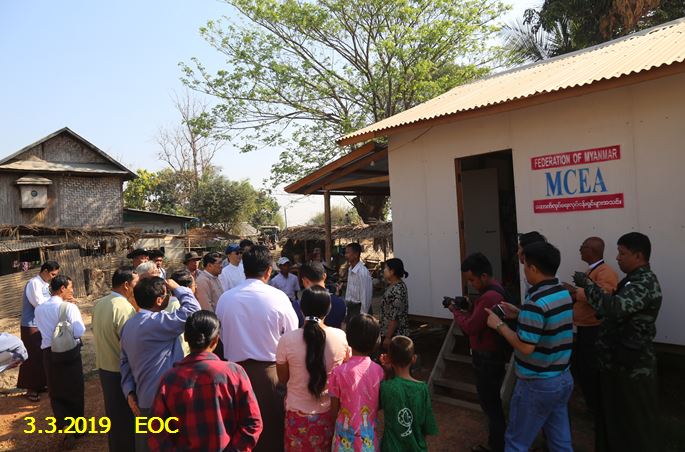 ဆက်လက်၍ ပြည်ထောင်စုဝန်ကြီးနှင့်အဖွဲ့သည် နိုင်ငံတော်အစိုးရ၏ ဦးဆောင် ထောက်ပံ့မှု၊ မြန်မာနိုင်ငံ ဆောက်လုပ်ရေးဆိုင်ရာလုပ်ငန်းရှင်များအသင်းချုပ်က ပူးပေါင်း လှူဒါန်းဆောက်လုပ်သည့် အိမ်ခြေ (၁၆၂)လုံးအနက်၊ ဆောက်လုပ်ပြီးစီးသည့် (၁၂၆)လုံးကို လိုက်လံကြည့်ရှုခြင်း၊ ကျွန်းတောစုကျေးရွာတွင် မြန်မာနိုင်ငံ ဆောက်လုပ်ရေးဆိုင်ရာ လုပ်ငန်းရှင် များ အသင်းချုပ်က ဆက်လက်ဆောက်လုပ်လျက်ရှိသည့် နေအိမ်များ၊ ဒေါ်ခင်ကြည် ဖောင်ဒေးရှင်းက ဆောက်လုပ်လှူဒါန်းသည့် အခြေခံပညာ အလယ်တန်းကျောင်း(ခွဲ) ကို ကြည့်ရှုလေ့လာပြီး မိုးရာသီအမီဆောင်ရွက်ရမည့် လုပ်ငန်းလိုအပ်ချက်များကို တာဝန်ရှိသူများနှင့် ညှိနှိုင်းဆောင်ရွက်ခဲ့ ပါသည်။