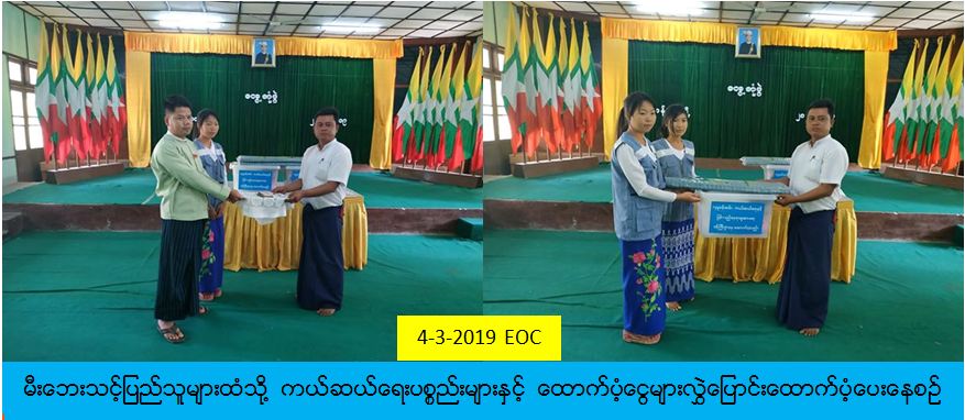 လူမှုဝန်ထမ်း၊ ကယ်ဆယ်ရေးနှင့် ပြန်လည်နေရာချထားရေးဝန်ကြီးဌာန၊ ဘေးအန္တရာယ်ဆိုင်ရာစီမံခန့်ခွဲမှုဦးစီးဌာန၊ ကန့်ဘလူခရိုင်ဦးစီးမှူးရုံးမှတာဝန်ရှိသူများသည် (၃ – ၃ -၂၀၁၉) ရက်နေ့တွင် ကန့်ဘလူမြို့နယ်၊ စံပါယ်နံ့သာကျေးရွာအုပ်စု၊ လေးလကျေးရွာတွင် မီးလောင်မှုကြောင့် လူနေအိမ် (၂) လုံးမှ အိမ်ထောင်စု (၂) စု၊ မီးဘေးသင့်ခဲ့ပြီး သေဆုံးသူ (၁) ဦး၊ ဒဏ်ရာရသူ (၁) ဦးရှိခဲ့ပြီး အဆိုပါ မီးဘေးသင့်လူနေအိမ် (၂) လုံးအတွက် အိမ်ဆောက်ပစ္စည်းဖိုးထောက်ပံံ့ငွေ (၂၀၀,၀၀၀)ကျပ်၊ သေဆုံး (၁) ဦးအတွက် ထောက်ပံ့ငွေ (၃၀၀,၀၀၀)ကျပ်၊ ဒဏ်ရာရသူ (၁) ဦးအတွက် ထောက်ပံ့ငွေ (၅၀,၀၀၀)ကျပ်နှင့် ဘေးသင့်လူဦးရေ (၃) ဦးအတွက် ဆန်ရိက္ခာဖိုးထောက်ပံ့ငွေ (၆,၃၀၀)ကျပ်၊ စုစုပေါင်းထောက်ပံ့ငွေ (၅၅၆,၃၀၀)ကျပ်နှင့် ကပ်ဆယ်ရေးပစ္စည်း (၁၆) မျိုး၊ (၂) အိမ်ထောင်စာတို့အား (၄ – ၃ -၂၀၁၉) ရက်နေ့တွင် မြို့နယ်အထွေထွေအုပ်ချုပ်ရေးဦးစီးဌာန၊ အစည်းအဝေးခန်းမ၌ စံပါယ်နံ့သာကျေးရွာအုပ်စု၊ ရပ်/ကျေးစာရေးထံသို့ လွှဲပြောင်းထောက်ပံ့ပေးအပ်ခဲ့ကြောင်း သိရှိရပါသည်။ #ha-fir #sgg_mar2019 Source: ကန့်ဘလူခရိုင်ဦးစီးမှူးရုံး (ဘစမ)