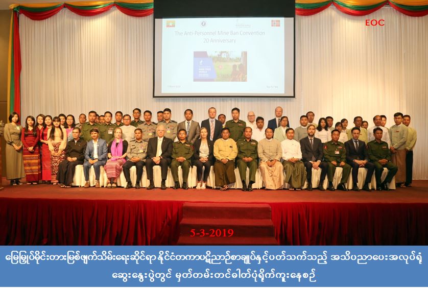 မြေမြှုပ်မိုင်း တားမြစ်ဖျက်သိမ်းရေးဆိုင်ရာ နိုင်ငံတကာပဋိညာဉ်စာချုပ်နှင့်ပတ်သက်သည့် အသိပညာပေး အလုပ်ရုံဆွေးနွေးပွဲကို ယနေ့နံနက်ပိုင်းတွင် နေပြည်တော်၊သင်္ဂဟဟိုတယ်၌် ကျင်းပရာ လူမှုဝန်ထမ်း၊ ကယ်ဆယ် ရေးနှင့်ပြန်လည်နေရာချထားရေးဝန်ကြီးဌာန ဒုတိယဝန်ကြီး ဦးစိုးအောင် တက်ရောက်၍ အဖွင့်အမှာစကား ပြောကြားခဲ့ ပါသည်။