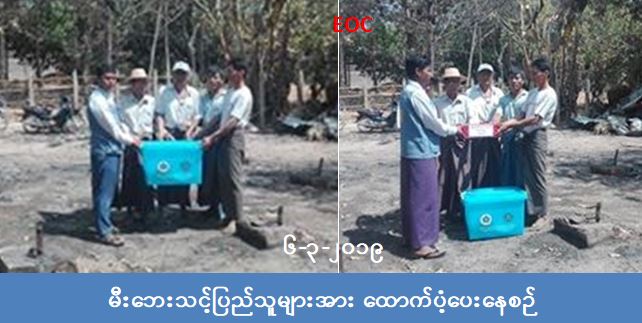 လူမှုဝန်ထမ်း၊ ကယ်ဆယ်ရေးနှင့် ပြန်လည်နေရာချထားရေးဝန်ကြီးဌာန၊ ဘေးအန္တရာယ်ဆိုင်ရာ စီမံခန့်ခွဲမှုဦးစီးဌာန၊ မိုးညို မြို့နယ်ဦးစီးမှူးရုံးမှ တာဝန်ရှိသူများသည် (၆-၃-၂၀၁၉)ရက်နေ့၊ နံနက်(၁၁:၃၀)နာရီအချိန်တွင် အုတ်ဖိုမြို့နယ်၊ တိမ်မြုတ် ကျေးရွာအုပ်စု၊အောင်သုခကျေးရွာ၊တွင် (၄-၃-၂၀၁၉)ရက်နေ့က ဖြစ်ပွားခဲ့သော မီးဘေးသင့် (၁) အိမ်ထောင်စာအတွက် အိမ်ဆောက်ပစ္စည်းဖိုး (၁၀၀,၀၀ဝ)ကျပ်၊ ဘေးသင့်ပြည်သူ (၃)ဦး အတွက် ဆန်ရိက္ခာဖိုး ထောက်ပံ့ငွေ(၆,၃၀ဝ) ကျပ်နှင့် အိမ်ထောင်စု(၁)စုအတွက် ကယ်ဆယ်ရေးပစ္စည်း (၁၅) မျိုးပါ (၁) ပုံးတို့ကို မီးဘေးသင့်ပြည်သူများလက်ဝယ်သို့ ကွင်းဆင်း ထောက်ပံ့ပေးအပ်ခဲ့ကြောင်း သိရှိရပါသည်။