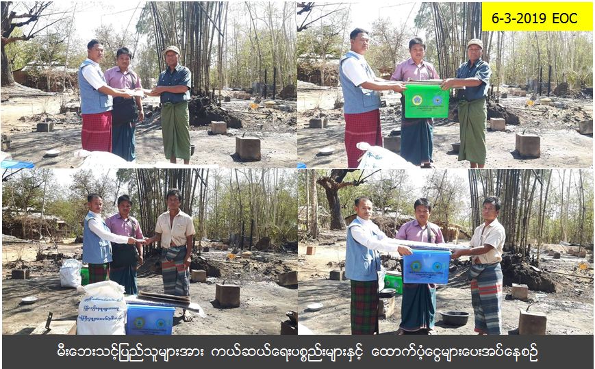 ကယ်ဆယ်ရေးနှင့် ပြန်လည်နေရာချထားရေးဝန်ကြီးဌာန၊ ဘေးအန္တရယ်ဆိုင်ရာစီမံခန့်ခွဲမှုဦးစီးဌာန၊ ကရင်ပြည်နယ်ဦးစီးမှူးရုံးမှတာဝန်ရှိသူများသည် (၅ – ၃ – ၂၀၁၉) ရက်နေ့တွင် ဘားအံမြို့နယ်၊ နောင်ပလိန်ကျေးရွာအုပ်စု၊ လှိုင်းထောင်ကျေးရွာ၌ ဖြစ်ပွားခဲ့သောမီးဘေးကြောင့် မီးဘေးသင့် အိမ်ထောင်စု (၂)စုမှ လူဦးရေ (၁၁)ဦးအတွက် ဆန်ရိက္ခာ (၇)ရက်စာဖိုးထောက်ပံ့ငွေ (၂၃,၁၀၀)ကျပ်၊ အိမ်ဆောက်ပစ္စည်း ဖိုးထောက်ပံ့ငွေ (၂၀၀,၀၀၀)ကျပ်နှင့် (၄၀၃၅၃)ကျပ်တန်ဖိုးရှိ ကယ်ဆယ်ရေးပစ္စည်း(၁၇)မျိုး၊ အိမ်ထောင်စု (၂)စုစာတို့အား (၆ – ၃ – ၂၀၁၉) ရက်နေ့တွင် သွားရောက်ထောက်ပံ့ပေးခဲ့ပါကြောင်း သိရှိရပါသည်။ #ha_fir #krn_mar2019 Source: ကရင်ပြည်နယ်ဦးစီးမှူးရုံး (ဘစမ)