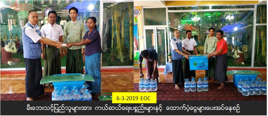 ကယ်ဆယ်ရေးနှင့် ပြန်လည်နေရာချထားရေးဝန်ကြီးဌာန၊ ဘေးအန္တရယ်ဆိုင်ရာစီမံခန့်ခွဲမှုဦးစီးဌာန၊ ရန်ကုန်တိုင်းဒေသကြီးဦးစီးမှူးရုံးမှတာဝန်ရှိသူများသည် (၃ – ၃ – ၂၀၁၉) ရက်နေ့၊ ဒဂုံမြို့သစ်(အရှေ့ပိုင်း) မြို့နယ်၊ အမှတ် (၁၅)ရပ်ကွက်၊ အင်ကြင်းလမ်းတွင် ဖြစ်ပွားခဲ့သောမီးဘေးကြောင့် (သွပ်မိုး/ပျဉ်ကာ)နေအိမ် (၃)လုံး မီးလောင်ဆုံးရှုံးခဲ့ပြီး အိမ်ထောင်စု (၃)စုမှ လူဦးရေ (၁၅)ဦး မီးဘေးသင့်ခဲ့သဖြင့် အိမ်ဆောက်ပစ္စည်းဖိုး ထောက်ပံ့ငွေ (၆၀၀,၀၀၀)ကျပ်၊ ဆန်ရိက္ခာ (၇) ရက်စာဖိုးငွေ (၃၁,၅၀၀)ကျပ်နှင့် ကယ်ဆယ်ရေးပစ္စည်း(၁၆)မျိုး (၃) အိမ်ထောင်စုစာ၊ ရေသန့်(၅)လီတာ (၁၅)ဗူး၊ စားဆီ (၅) ပိဿာ (၁)ပုံးတို့အား ဘေးသင့်ပြည်သူများ၏ လက်ဝယ်သို့ သက်ဆိုင်ရာမြို့နယ်ထွေအုပ်တို့နှင့်အတူ (၁၅) ရပ်ကွက်ဓမ္မာရုံတွင် (၆ – ၃ – ၂၀၁၉) ရက်နေ့၌ သွားရောက်ထောက်ပံ့ပေးခဲ့ပါကြောင်း သိရှိရပါသည်။ #ha_fir #ygn_mar2019 Source: ရန်ကုန်တိုင်းဒေသကြီးဦးစီးမှူးရုံး (ဘစမ)