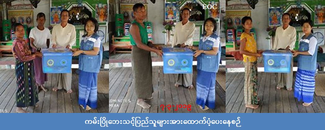 လူမှုဝန်ထမ်း၊ ကယ်ဆယ်ရေးနှင့် ပြန်လည်နေရာချထားရေးဝန်ကြီးဌာန၊ ဘေးအန္တရာယ်ဆိုင်ရာ စီမံခန့်ခွဲမှုဦးစီးဌာန၊ ကသာ ခရိုင်ဦးစီးမှူးရုံးမှ တာဝန်ရှိသူများသည် ကသာမြို့နယ်၊ ပုလွှေရွှေကျေးရွာအုပ်စု၊ ရေလယ်ကျွန်း ကျေးရွာတွင် (၆-၃-၂၀၁၉) ရက်နေ့၌ ဧရာဝတီမြစ်ရေတိုက်စားမှုကြောင့် ကမ်းပြိုပြောင်းရွှေ့အိမ်ထောင်စု (၅)စု အတွက် အိမ်ဆောက်ပစ္စည်းဖိုး (၅၀၀,၀၀၀)ကျပ်နှင့် လူဦးရေ(၂၆)ဦးအတွက် ဆန်ရိက္ခာဖိုးငွေ (၅၄,၆၀၀)ကျပ်တို့အား (၇-၃-၂၀၁၉) ရက်နေ့တွင် ဘေးသင့် ပြည်သူထံသို့ ထောက်ပံ့ပေးအပ်ခဲ့ကြောင်းသိရှိရပါသည်။