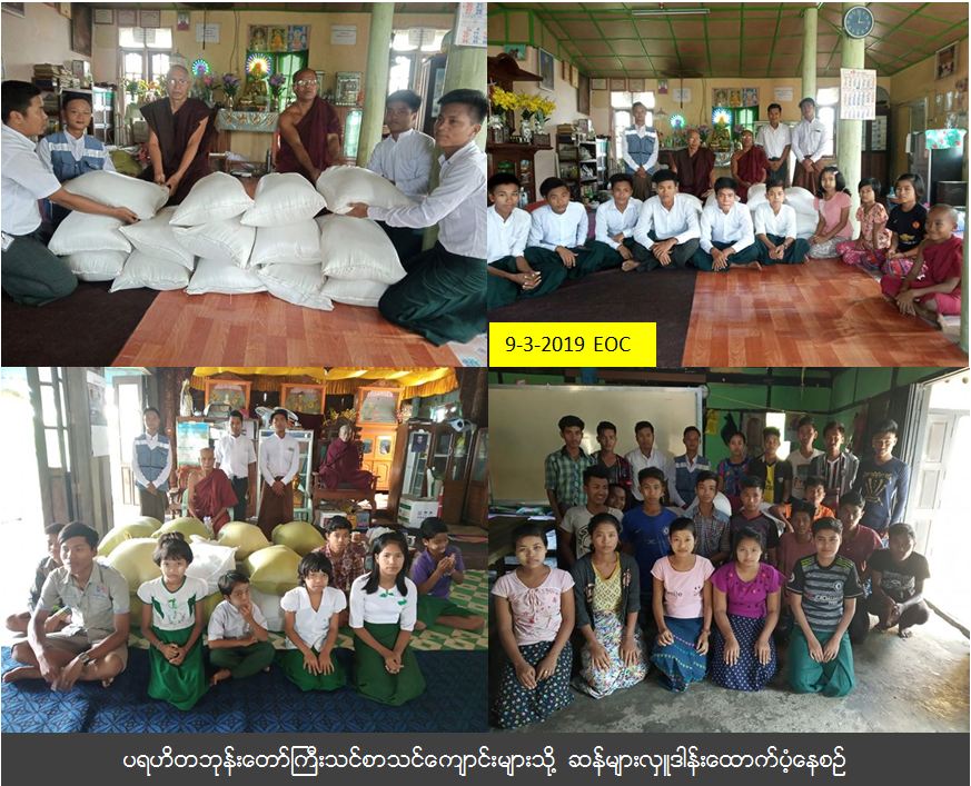 ဘေးအန္တရာယ်ဆိုင်ရာစီမံခန့့်ခွဲမှုဦးစီးဌာန၊ ကျောက်ဖြူခရိုင်ဦးစီးမှူးရုံးမှ တာဝန်ရှိသူများသည် (၈ – ၃ – ၂၀၁၉) ရက်နေ့တွင် စေတီတောင်ပရဟိတကျောင်းအတွက် ဆန် (၁၀) အိတ်၊ ဗောဓိသိပ္ပံပရဟိတကျောင်းအတွက် ဆန် (၇) အိတ်၊ ဓမ္မိကာရုံပရဟိတကျောင်းအတွက် ဆန် (၅) အိတ်၊ (၂၃) ပြည်၊ (၆) ဘူးတို့အား သွားရောက် လှူဒါန်းထောက်ပံ့ခဲ့ပါကြောင်း သတင်းရရှိပါသည်။ #ha_otr #rke_mar2019 Source – ကျောက်ဖြူခရိုင်ဦးစီးမှူးရုံး (ဘစမ)