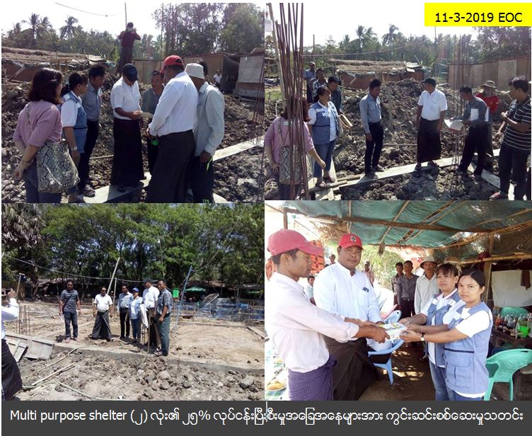 ဘေးအန္တရာယ်ဆိုင်ရာစီမံခန့့်ခွဲမှုဦးစီးဌာန၊ ဖျာပုံခရိုင်ဦးစီးမှူးရုံးမှ တာဝန်ရှိသူများသည် (၁၀ – ၃ – ၂၀၁၉) ရက်နေ့တွင် ဘိုကလေးမြို့နယ်၊ မြစ်ပိုးကျုံစိန်ကျေးရွာတွင် တာဝန်ယူဆောက်လုပ်နေသော Apex Partner Coနှင့် ကြိမ်ချောင်းကြီးကျေးရွာတွင် တာဝန်ယူဆောက်လုပ်နေသော ဥဒေါင်းနေခြည်ကုမ္ပဏီတို့၏ Multi purpose shelter (၂) လုံးမှ ၂၅% လုပ်ငန်းပြီးစီးမှုအခြေအနေအား ဘိုကလေးမြို့နယ်တည်ဆောက်ရေးကော်မတီအဖွဲ့ဝင်များနှင့် အတူ ကွင်းဆင်းစစ်ဆေးရာတွင် ပူးပေါင်းဆောင်ရွက်ခဲ့ပါသည်။ ထို့နောက် ကျေးရွာအုပ်ချုပ်ရေးမှူးများအား သဘာဝဘေးအသိပညာပေးလက်ကမ်းစာစောင်များကို ကျေးရွာပြည်သူများဖြန့်ဝေပေးနိုင်ရေးပေးအပ်ခဲ့ပါကြောင်းသတင်းရရှိပါသည်။ #ha_otr #ayy_mar2019 Source – ဖျာပုံခရိုင်ဦးစီးမှူးရုံး (ဘစမ)