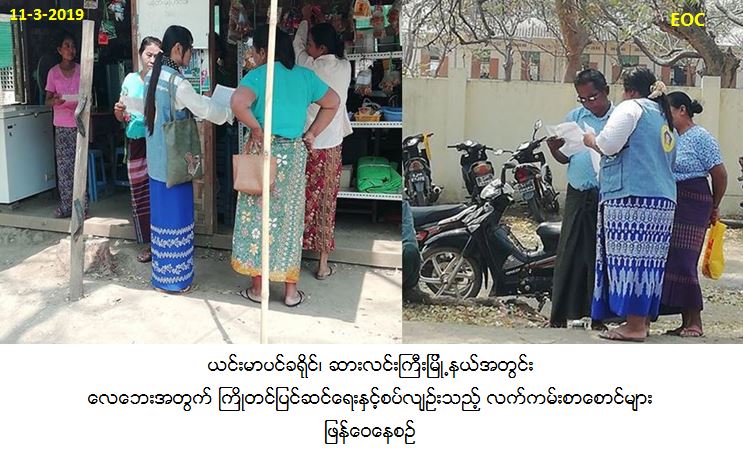 လူမှုဝန်ထမ်း၊ ကယ်ဆယ်ရေးနှင့် ပြန်လည်နေရာချထားရေးဝန်ကြီးဌာန၊ ဘေးအန္တရာယ်ဆိုင်ရာစီမံခန့်ခွဲမှု ဦးစီးဌာန၊ ယင်းမာပင်ခရိုင်ဦးစီးမှူးရုံးမှ တာဝန်ရှိသူများသည် (၁၁-၃-၂၀၁၉)ရက်နေ့တွင် ယင်းမာပင်ခရိုင်၊ ဆားလင်းကြီးမြို့နယ်အတွင်း၌ လူစည်းကားသောဈေးနှင့် ကားဂိတ်များတွင်လည်းကောင်း၊ မတ်လ၊ဧပြီလနှင့်မေလများတွင် ဖြစ်ပွား လေ့ရှိသော လေဘေးအတွက် ကြိုတင်ပြင်ဆင်ရေးနှင့်စပ်လျဉ်းသည့် လက်ကမ်းစာစောင်များကို အထွေထွေအုပ်ချုပ်ရေးဦးစီးဌာနရုံးမှတစ်ဆင့် ကျေးရွာအုပ်စု (၄၂)အုပ်စုတို့အား လည်းကောင်း ဖြန့်ဝေခဲ့ပါကြောင်း သတင်းရရှိပါသည်။