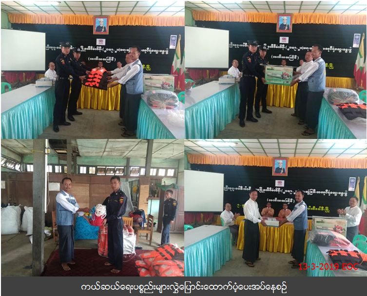 လူမှုဝန်ထမ်း၊ ကယ်ဆယ်ရေးနှင့် ပြန်လည်နေရာချထားရေးဝန်ကြီးဌာန၊ ဘေးအန္တရာယ်ဆိုင်ရာစီမံခန့်ခွဲမှု ဦးစီးဌာန၊ ပြည်ခရိုင်ဦးစီးမှူးရုံးမှ တာဝန်ရှိသူများသည် (၁၁-၃-၂၀၁၉) ရက်နေ့တွင် ပေါက်ခေါင်းမြို့နယ် အထွေထွေအုပ်ချုပ်ရေးဦးစီးဌာန၌ Chain Saw (၂) လက်၊ Life jacket (၅၀) ထည်၊ အသက်ကယ်ကြိုး (၁၄’) (၅၀) ချောင်း ၊ (၁၀၀’) (၅၀) ချောင်း၊ (၃၃၀’) (၅) ချောင်း၊ အသက်ကယ် ဘောကွင်း (၅၀) ခု၊ အသက်ကယ်လှေ (၅) စီးတို့အား ပေါက်ခေါင်းမြို့နယ် မီးသတ်ဦးစီးဌာနသို့လွှဲပြောင်းထောက်ပံ့ပေးခဲ့ပြီး ဘေး (၈) မျိုး လက်ကမ်းစာစောင်များအား မြို့နယ်အထွေထွေအုပ်ချုပ်ရေးဦးစီးဌာနသို့ လွှတ်တော်ကိုယ်စားလှယ်များ၊ မြို့နယ်အထွေထွေအုပ်ချုပ်ရေးဦးစီးဌာနမှ တာဝန်ရှိသူများနှင့်အတူ လွှဲပြောင်းထောက်ပံ့ပေးခဲ့ပါကြောင်း သတင်းရရှိပါသည်။ #ha_otr #bgo_mar2019 Source: ပြည်ခရိုင်ဦးစီးမှူးရုံး (ဘစမ)