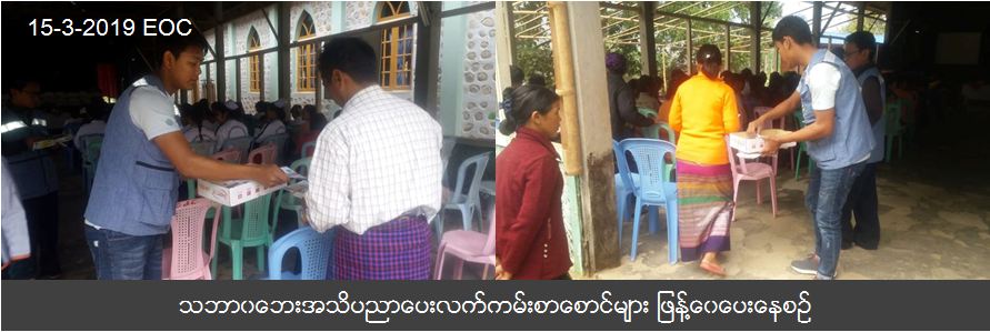 လူမှုဝန်ထမ်း၊ ကယ်ဆယ်ရေးနှင့် ပြန်လည်နေရာချထားရေးဝန်ကြီးဌာန၊ ဘေးအန္တရာယ်ဆိုင်ရာစီမံခန့်ခွဲမှု ဦးစီးဌာန၊ ကချင်ပြည်နယ်ဦးစီးမှူးရုံးမှ တာဝန်ရှိသူများသည် ကချင်ပြည်နယ်အစိုးရအဖွဲ့ လူမှုရေးဝန်ကြီး ဦးနေဝင်း၏ ချီဖွေ-ပန်ဝါ ခရီးစဉ်သို့ လိုက်ပါလျက် (၁၂-၃-၂၀၁၉) ရက်နေ့တွင် ခရစ်ယာန်နှစ်ခြင်းဘုရားကျောင်း၌ ကျင်းပသော လူထုတွေ့ဆုံပွဲအခမ်းအနားတွင် ဘေးအန္တရာယ်ဆိုင်ရာစီမံခန့်ခွဲမှုဦးစီးဌာန၏မူဝါဒ၊ ရည်ရွယ်ချက်နှင့် လုပ်ငန်းတာဝန်များ၊ သဘာဝဘေးနှင့် ပတ်သက်သည့် ထောက်ပံ့ရေးကိစ္စရပ်များကို ရှင်းလင်းပြောကြားခဲ့ပြီး ဘေး (၈) မျိုး လက်ကမ်းစာစောင်များ ဖြစ်သည့် ရေဘေး၊ မီးဘေး၊ ငလျင်ဘေး၊ မုန်တိုင်းဘေး စသည့်သဘာဝဘေးအသိပညာပေး လက်ကမ်း စာစောင်များအား ပေးအပ်ခဲ့ပါကြောင်းသိရှိရပါသည်။ #ar #kcn_mar 2019 Source: ကချင်ပြည်နယ်ဦးစီးမှူးရုံး (ဘစမ)