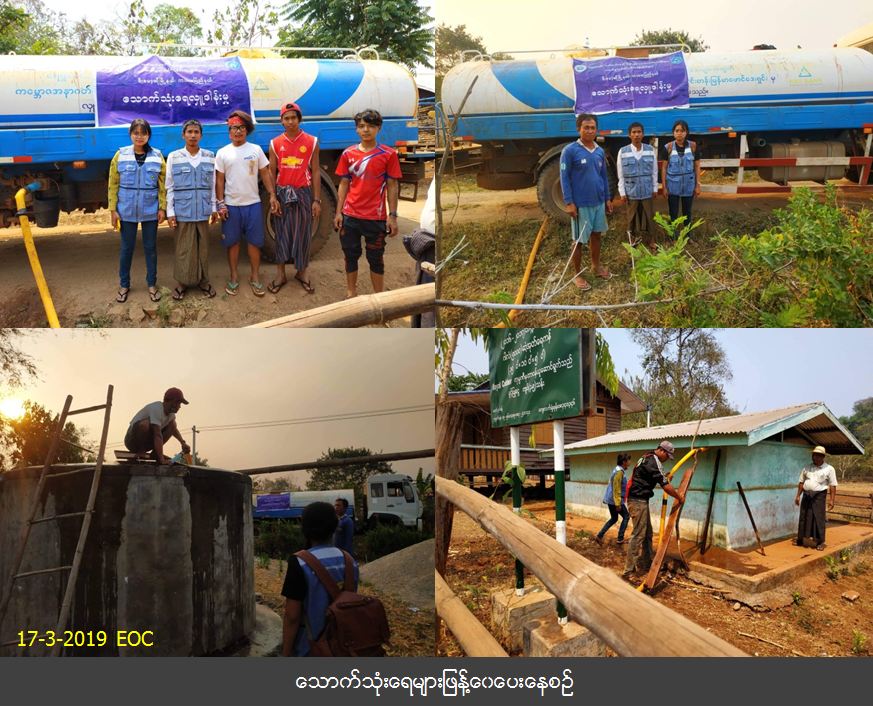 လူမှုဝန်ထမ်း၊ ကယ်ဆယ်ရေးနှင့် ပြန်လည်နေရာချထားရေးဝန်ကြီးဌာန၊ ဘေးအန္တရာယ်ဆိုင်ရာစီမံခန့်ခွဲမှု ဦးစီးဌာန၊ ကယားပြည်နယ်ဦးစီးမှူးရုံးမှ တာဝန်ရှိသူများသည် သောက်သုံး ရေရှားပါးလျက်ရှိသော ဒီးမော့ဆိုမြို့နယ်၊ ဒေါဖုကျေးရွာအုပ်စု၊ ဒေါပဲ့ကျေးရွာသို့ ရေဂါလံ (၃၀၀၀) ဆန့် ရေသယ်ယာဉ် (၁) စီးနှင့် လီဝိုးကျေးရွာသို့ ရေဂါလံ (၃၀၀၀) ဆန့် ရေသယ်ယာဉ် (၁) စီး၊ စုစုပေါင်း ရေဂါလံ (၆၀၀၀)အား (၁၅-၃-၂၀၁၉) ရက်နေ့တွင် သွားရောက်လှူဒါန်းခဲ့ကြောင်း သတင်းရရှိပါသည်။ #ha_drg #kyh_mar2019 Source: ကယားပြည်နယ်ဦးစီးမှူးရုံး (ဘစမ)