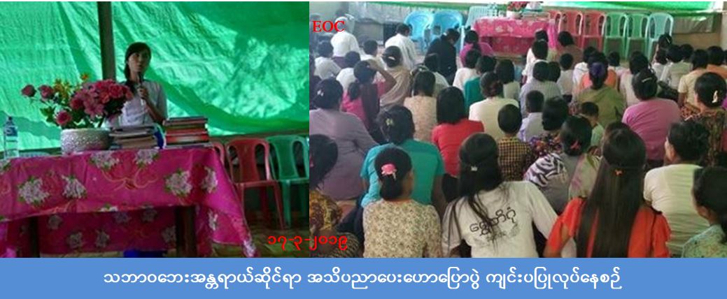ဘေးအန္တရာယ်ဆိုင်ရာစီမံခန့်ခွဲမှုဦးစီးဌာန၊ မော်လမြိုင်ကျွန်းမြို့နယ်ဦးစီးမှူးရုံးမှ တာဝန်ရှိသူများသည် (၁၇-၃-၂၀၁၉) ရက် နေ့ (၁၁:၀၀) နာရီအချိန်တွင် လပွတ္တာခရိုင်၊ မော်လမြိုင်ကျွန်းမြို့နယ်၊ ကျားဟုန်းကျေးရွာအုပ်စု၊ လမုတပင်ကျေးရွာ၌ သဘာဝဘေးအန္တရာယ်ဆိုင်ရာ အသိပညာပေးဟောပြောပွဲ ကျင်းပပြုလုပ်ခဲ့ရာ ကျေးရွာပြည်သူ (၁၀၀)ဦးခန့်တက်ရောက်ခဲ့ ကြောင်း သိရှိရပါသည်။