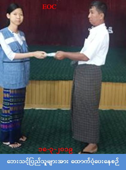 လူမှုဝန်ထမ်း၊ ကယ်ဆယ်ရေးနှင့် ပြန်လည်နေရာချထားရေးဝန်ကြီးဌာန၊ ဘေးအန္တရာယ်ဆိုင်ရာ စီမံခန့်ခွဲမှု ဦးစီးဌာန ပန်းတောင်းမြို့နယ်ဦးစီးမှူးရုံးမှ တာဝန်ရှိသူများသည် ပန်းတောင်းမြို့နယ် ရေကျော်ကျေးရွာအုပ်စု၊ ရေကျော်ကျေးရွာ (၁၁-၃-၂၀၁၉)ရက်နေ့တွင်ဖြစ်ပွားခဲ့သော လေဘေးကြောင့် အမိုးလန်နေအိမ်(၁)လုံးအတွက် အိမ်ဆောက်ပစ္စည်းဖိုးထောက်ပံ့ငွေ (၆၁,၂၀၀) ကျပ်အား (၁၈-၃-၂၀၁၉)ရက်နေ့ နေ့လည် (၁၁:၀၀)နာရီ အချိန်တွင် ပန်းတောင်းမြို့အထွေထွေအုပ်ချုပ်ရေးဦးစီးဌာနတွင် ကျေးရွာအုပ်ချုပ်ရေးမှူးနှင့်အတူ ပြည်သူ့လက်ဝယ်သို့ ထောက်ပံ့ပေးအပ်ခဲ့ကြောင်း သိရှိရပါသည်။