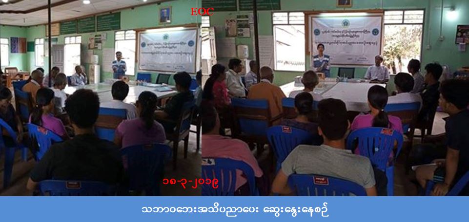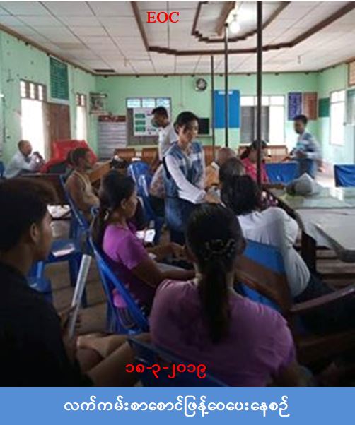 လူမှုဝန်ထမ်း၊ ကယ်ဆယ်ရေးနှင့် ပြန်လည်နေရာချထားရေးဝန်ကြီးဌာန၊ ဘေးအန္တရာယ်ဆိုင်ရာစီမံခန့်ခွဲမှုဦးစီး ဌာန၊ မွန်ပြည်နယ်ဦးစီးမှူးရုံးမှ တာဝန်ရှိသူများသည် (၁၈-၃-၂၀၁၉)ရက်နေ့တွင် သဘာဝဘေးအသိပညာပေး ဆွေးနွေးခြင်းနှင့် လက်ကမ်းစာစောင်ဖြန့်ဝေခြင်းတို့ကို (၁၀:၀၀)နာရီမှ(၁၁:၃၀)နာရီအထိ မော်လမြိုင်မြို့ မြိုင် သာယာရပ်ကွက် အုပ်ချုပ်ရေးမှူးရုံး၌ ပြည်သူလူထု(၇၀)ဦးခန့်ဖြင့် ပြုလုပ်ခဲ့ပါကြောင်း သိရှိရပါသည်။