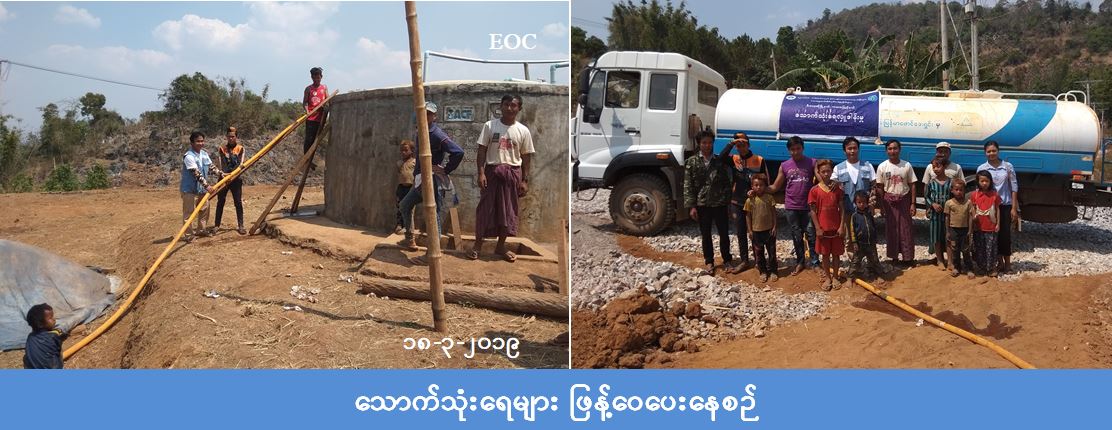လူမှုဝန်ထမ်း၊ ကယ်ဆယ်ရေးနှင့် ပြန်လည်နေရာချထားရေးဝန်ကြီးဌာန၊ ဘေးအန္တရာယ်ဆိုင်ရာ စီမံခန့်ခွဲမှုဦးစီးဌာန၊ ကယား ပြည်နယ်ဦးစီးမှူးရုံးမှ တာဝန်ရှိသူများသည် သောက်သုံးရေရှားပါးလျှက်ရှိသော ဒီးမော့ဆိုမြို့နယ်၊ လိုပူကျေးရွာအုပ်စု၊ လိုပူခေါင်းစောင်းကျေးရွာသို့ (၁၈-၃-၂၀၁၉)ရက်နေ့တွင် ရေဂါလံ (၃၀၀၀) ဆန့် ရေသယ်ယာဉ် (၁)စီး သွားရောက်လှူဒါန်း ခဲ့ကြောင်းသိရှိရပါသည်။
