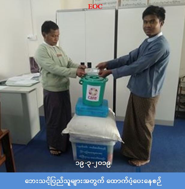 လူမှုဝန်ထမ်း၊ ကယ်ဆယ်ရေးနှင့် ပြန်လည်နေရာချထားရေးဝန်ကြီးဌာန၊ ဘေးအန္တရာယ်ဆိုင်ရာ စီမံခန့်ခွဲမှုဦးစီးဌာန၊ ချင်းပြည်နယ်ဦးစီးမှူးရုံးမှတာဝန်ရှိသူများသည် ဟားခါးမြို့နယ်၊ ခွာပီးကျေးရွာအုပ်စု၊ ခွာပီးကျေးရွာ၌ (၁၇-၃-၂၀၁၉) ရက်နေ့တွင်ဖြစ်ပွားခဲ့သောမီးဘေးကြောင့် နေအိမ် (၁) လုံး၊ အိမ်ထောင်စု (၁) စုမှ လူဦးရေ (၇) ဦးဘေးသင့်ခဲ့ရာ အဆိုပါ ဘေးသင့်ပြည်သူများအတွက် ကယ်ဆယ်ရေးပစ္စည်း (၁၆) မျိုး (၁) အိမ်ထောင်စုစာ၊ Care Myanmar Family Kit(၁)စုံ၊ First Aid Kits(၁)စုံ၊Care Myanmar ပလတ်စတစ်ရေပုံး (၁)ပုံး၊ အိမ်ဆောက်ပစ္စည်းဖိုးထောက်ပံ့ငွေ (၂၀၀,၀၀၀) ကျပ်နှင် ဆန်ရိက္ခာ (၇) ရက်စာဖိုးငွေ (၁၄,၇၀၀)ကျပ်တို့အား (၁၉-၃-၂၀၁၉) ရက်နေ့တွင် ဟားခါးမြို့နယ် အထွေထွေအုပ်ချုပ်ရေး ဦးစီးဌာနမှတစ်ဆင့် လွှဲပြောင်းပေးအပ်ခဲ့ကြောင်း သိရှိရပါသည်။