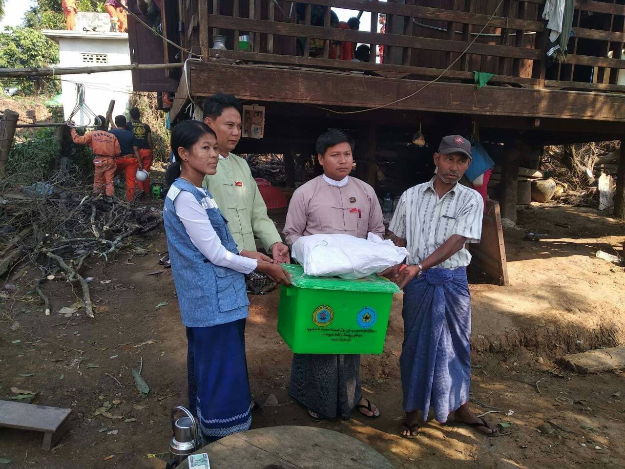 အဆိုပါလေပြင်းတိုက်ခတ်မှုကြောင့် ပျက်စီးခဲ့သည့် နေအိမ်များနှင့် ဘာသာရေးကျောင်းများ အတွက် (၄၆)သိန်း(၈)သောင်းကျော်တန်ဖိုးရှိ အိမ်ဆောက်ပစ္စည်းဖိုးနှင့် ကယ်ဆယ်ရေးပစ္စည်းများ အား သက်ဆိုင်ရာခရိုင်/ မြို့နယ် ဘေးအန္တရာယ်ဆိုင်ရာစီမံခန့်ခွဲမှုဦးစီးဌာနရုံးများမှ တာဝန်ရှိသူ များက (၁၉-၃-၂၀၁၉)ရက်နေ့တွင် သွားရောက်ထောက်ပံ့ခဲ့ကြောင်းနှင့် လိုအပ်သည့်ထောက်ပံ့မှုများ ဆက်လက်ဆောင်ရွက်လျက်ရှိကြောင်း သတင်းရရှိပါသည်။