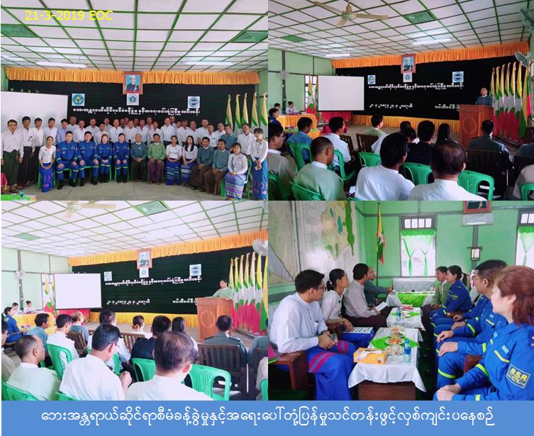 လူမှုဝန်ထမ်း၊ ကယ်ဆယ်ရေးနှင့် ပြန်လည်နေရာချထားရေးဝန်ကြီးဌာန၊ ဘေးအန္တရာယ်ဆိုင်ရာစီမံခန့်ခွဲမှုဦးစီးဌာနှင့် Myanmar Blue Sky Rescue Development Council အဖွဲ့တို့ပူးပေါင်း၍ (၂၁-၃-၂၀၁၉) ရက်နေ့တွင် ပေါက်ခေါင်းမြို့နယ်အထွေထွေအုပ်ချုပ်ရေးဦးစီးဌာန၊ အစည်းအဝေးခန်း မ၌ *ဘေးအန္တရာယ်ဆိုင်ရာစီမံခန့်ခွဲမှုနှင့်အရေးပေါ်တံ့ုံပြန်မှုသင်တန်း*ဖွင့်ပွဲအခမ်းအနားအား ဖွင့်လှစ်ဆောင်ရွက်ခဲ့ပါသည်။ ဖွင့်ပွဲအခမ်းအနားတွင် ဘေးအန္တရာယ်ဆိုင်ရာစီမံခန့်ခွဲမှုဦးစီးဌာနမှ ဒုတိယညွှန်ကြားရေးမှူးချုပ် ဦးသန်းထွဋ်ဆွေမှ အဖွင့်မိန့်ခွန်းပြောကြားခဲ့ပြီး၊ ပေါက်ခေါင်းမြို့နယ်အထွေထွေအုပ်ချုပ်ရေးဦးဌာန၊ မြို့နယ်အုပ်ချုပ်ရေးမှူးမှ အဖွင့်အမှာစကားပြောကြားခဲ့ပါသည်။ အဆိုပါသင်တန်းအား