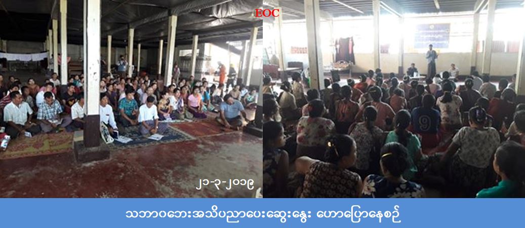 လူမှုဝန်ထမ်း၊ ကယ်ဆယ်ရေးနှင့်ပြန်လည်နေရာချထားရေးဝန်ကြီးဌာန၊ ဘေးအန္တရာယ်ဆိုင်ရာ စီမံခန့်ခွဲမှုဦးစီး ဌာန၊ ကော့ကရိတ်ခရိုင်ဦးစီးမှူးရုံးမှ တာဝန်ရှိသူများသည် (၂၁-၃-၁၉)ရက်နေ့(၁၀:၀၀)နာရီတွင် ကော့က ရိတ်မြို့နယ်၊ ကမ်းနီ ကျေးရွာ ဘုန်းတော်ကြီးကျောင်းဓမ္မာရုံတွင်လူဦးရေ(၁၅၀)ဦးခန့်အား ပြန်ကြားရေးနှင့် ပြည်သူ့ဆက်ဆံရေးဦးစီးဌာန၊ မီးသတ်ဦးစီးဌာနတို့နှင့်ပူးပေါင်း၍ သဘာဝဘေးအန္တရာယ်အသိပညာပေးဟောပြောခဲ့ပြီး လက်ကမ်းစာစောင်များဝေငှခဲ့ ကြောင်း သိရှိရပါသည်။
