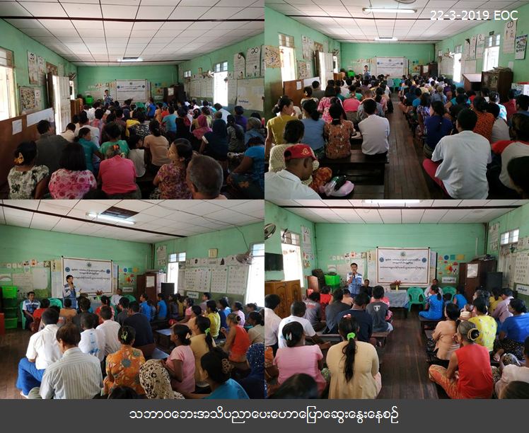 လူမှုဝန်ထမ်း၊ကယ်ဆယ်ရေးနှင့်ပြန်လည်နေရာချထားရေးဝန်ကြီးဌာန၊ ဘေးအန္တရာယ်ဆိုင်ရာစီမံခန့့်ခွဲမှုဦးစီးဌာန၊ မွန်ပြည်နယ်ဦးစီးမှူးရုံးမှ တာဝန်ရှိသူများသည် (၂၂-၃-၂၀၁၉) ရက်နေ့တွင် သဘာဝဘေး အသိပညာပေး ဆွေးနွေးခြင်းနှင့် လက်ကမ်းစာစောင်ဖြန့်ဝေခြင်းတို့ကို (၁၀:၃၀)နာရီမှ (၁၁:၃၀) နာရီအထိ မော်လမြိုင်မြို့၊ မြေနီကုန်းရပ်ကွက်၊ မဟာမြိုင်မူလတန်းကျောင်းတွင် ပြည်သူလူထု (၁၅၀) ဦးခန့်ဖြင့် ပြုလုပ်ခဲ့ပါကြောင်း သိရှိရပါသည်။ #ar #mon_mar2019 Source: မွန်ပြည်နယ်ဦးစီးမှူးရုံး (ဘစမ)